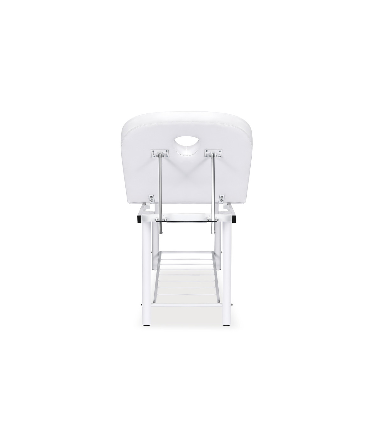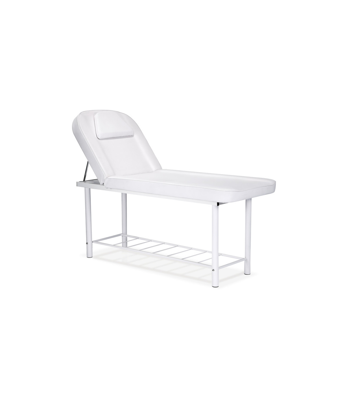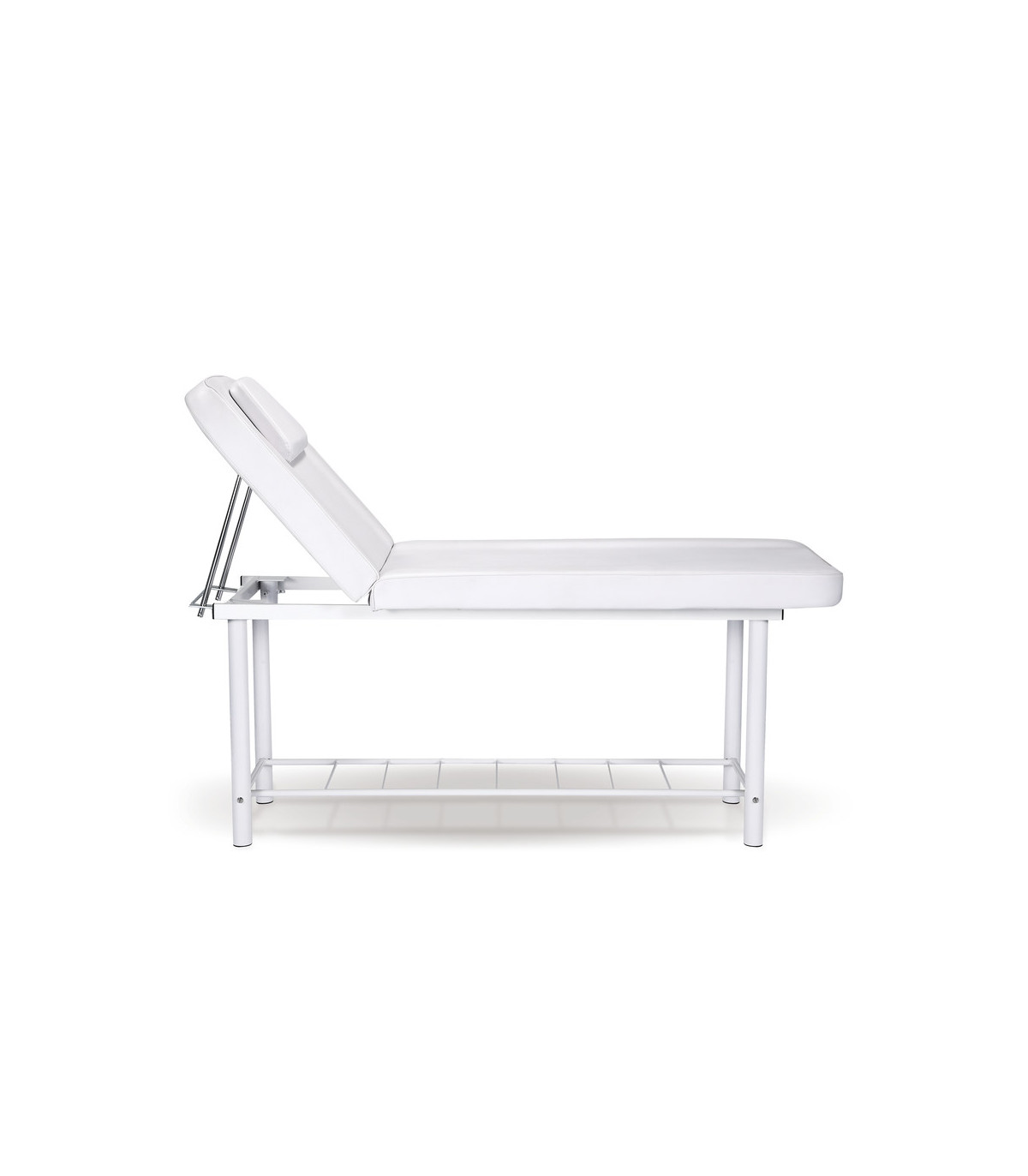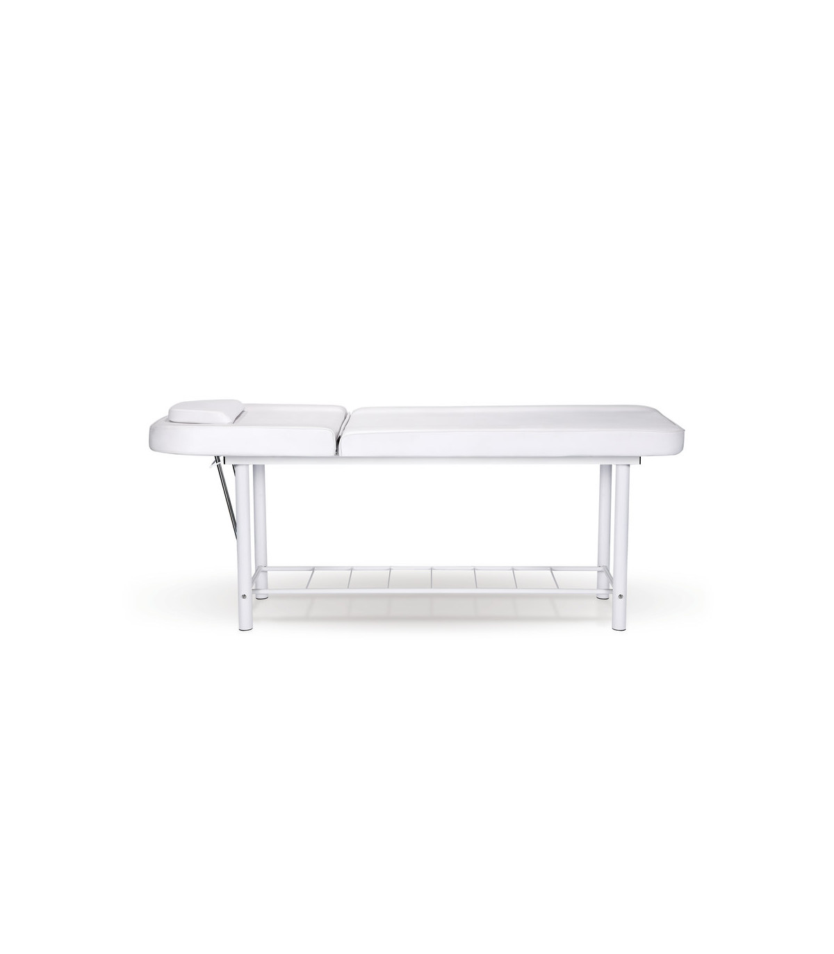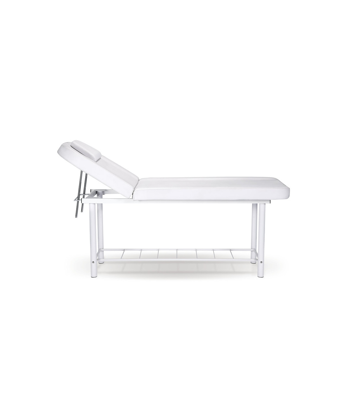 The inclination of the bed's backrest is manually adjustable, allowing the client's position to be customized according to the type of service being provided, be it a massage, a facial treatment, or any other aesthetic procedure.