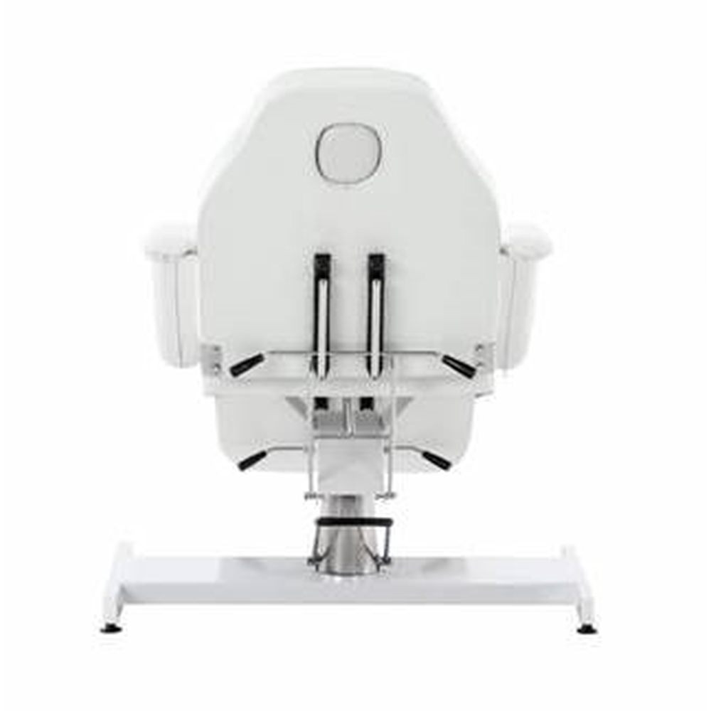 The height adjustment is done through a hydraulic pump with a wide and comfortable pedal. This design allows the esthetics professional to effortlessly adjust the bed's height, making treatment procedures easier to perform.