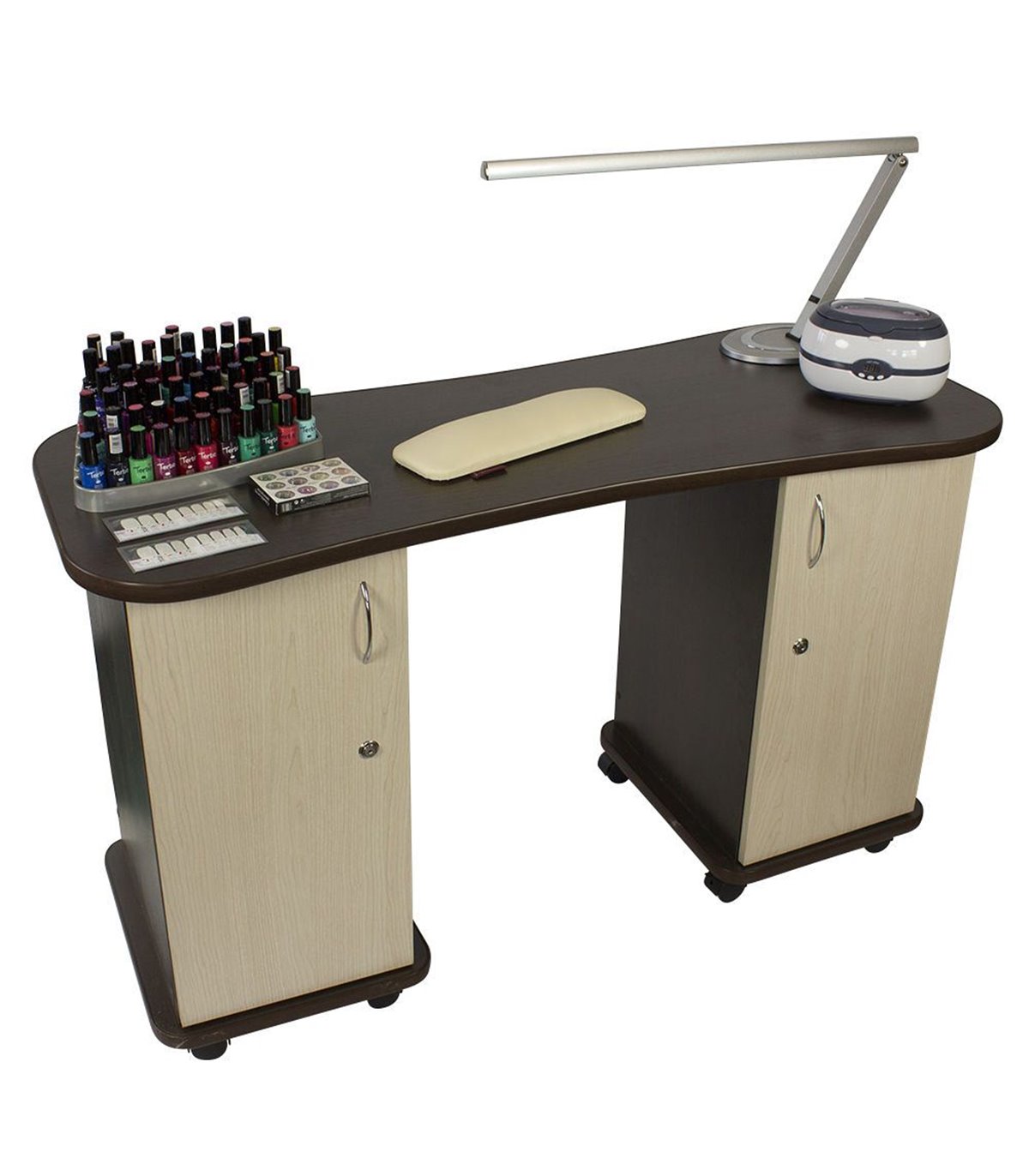 Manufactured with high-quality materials, this manicure table ensures durability and resistance. Its spacious and comfortable working surface allows professionals to perform their work with ease, while its multiple storage compartments offer an organized space to store all the tools and products needed for manicure services.