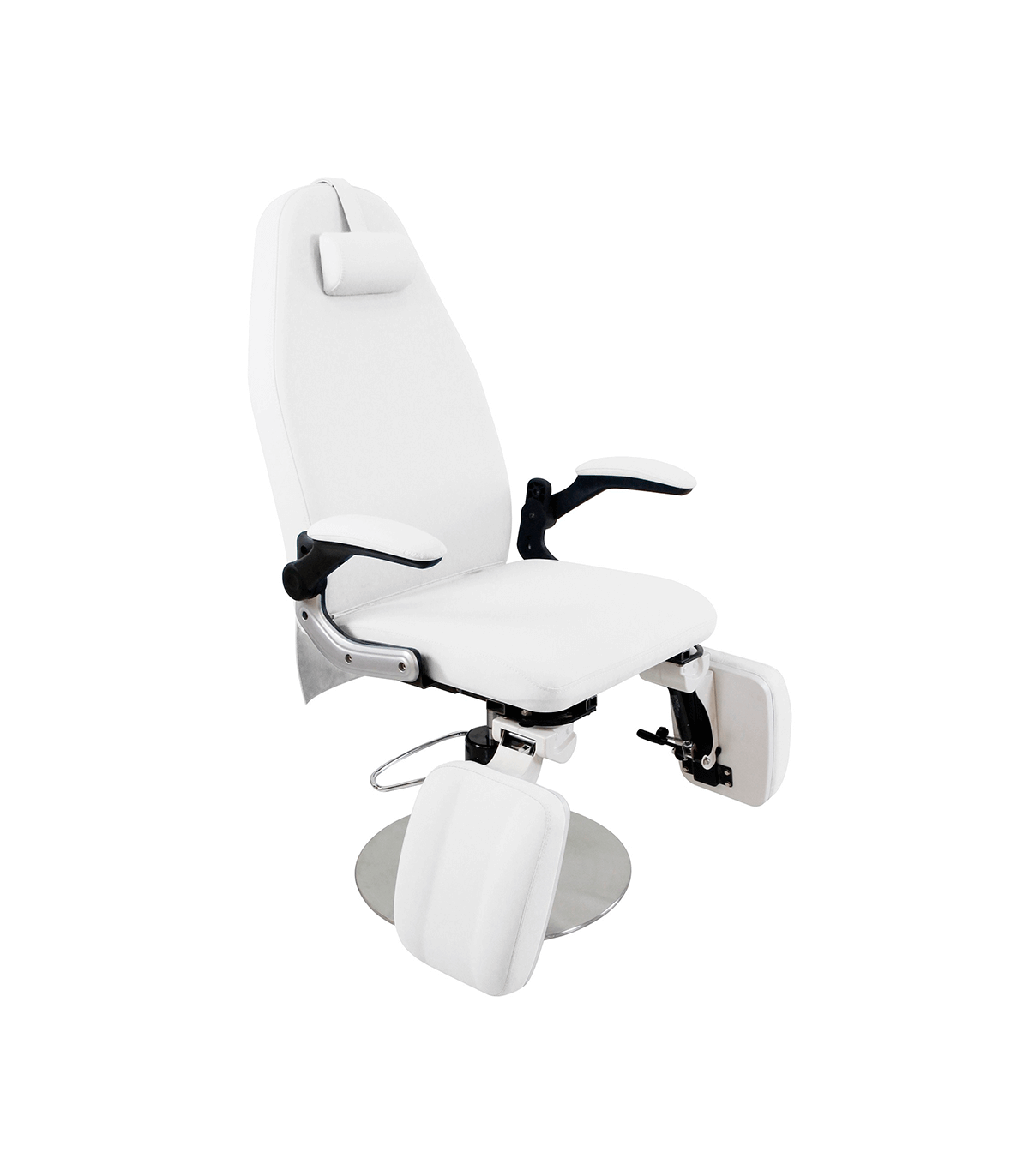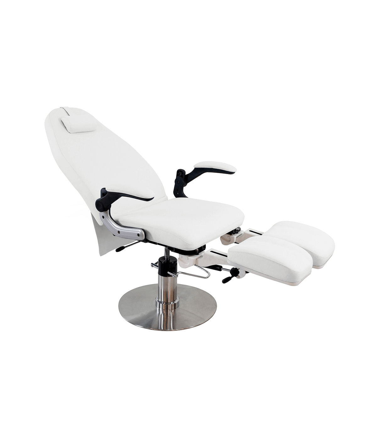 The chair's upholstery is made of PU, a durable and easy-to-clean material that ensures product longevity and hygiene. In addition, the chair features a footrest with adjustable tilt (90º up-down by gas piston / 90º right-left), allowing customization of the client's position for optimal comfort during the treatment.