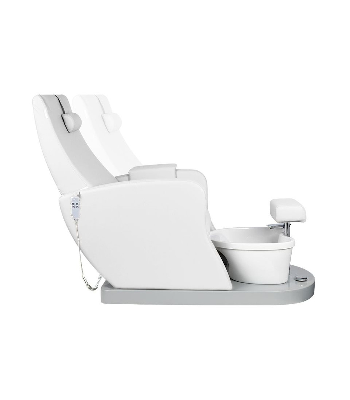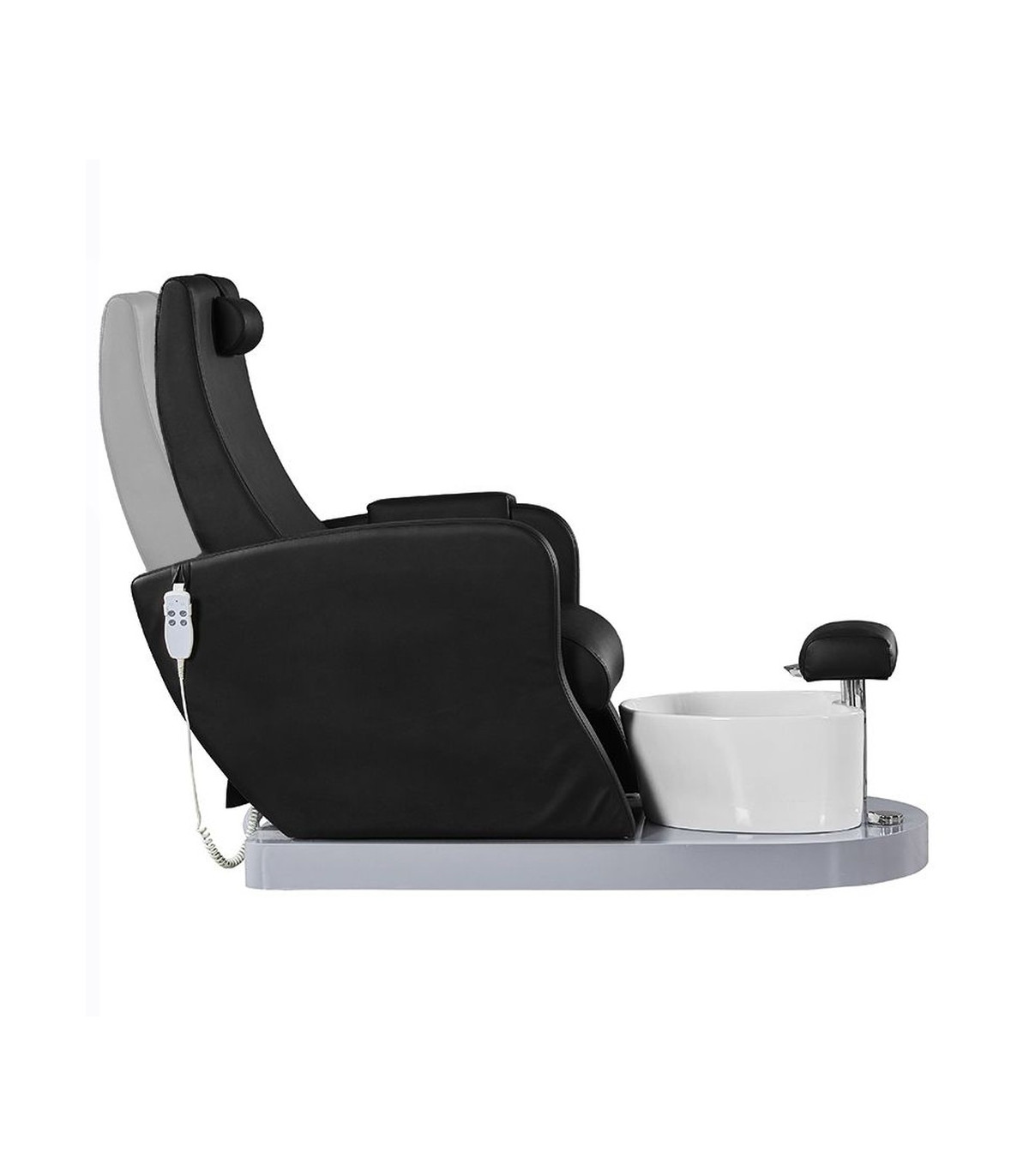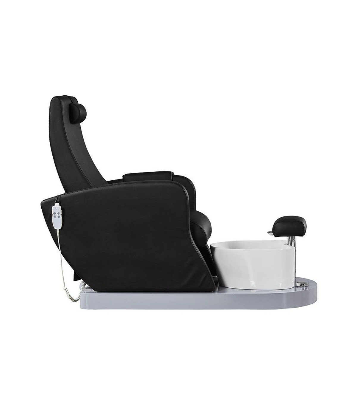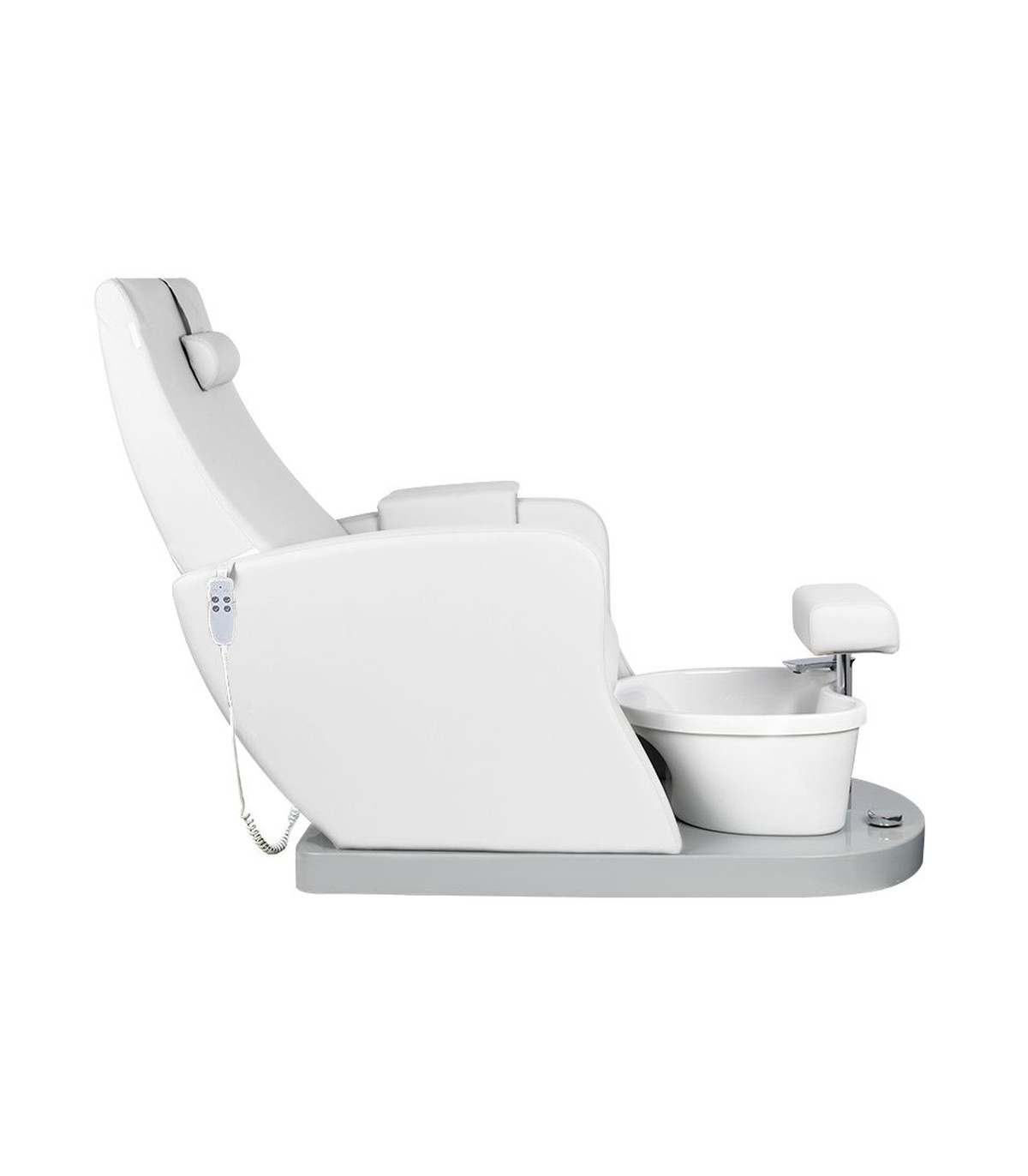 This pedicure chair is equipped with electronic seat controls, backrest tilt adjustment, and front/back adjustment.