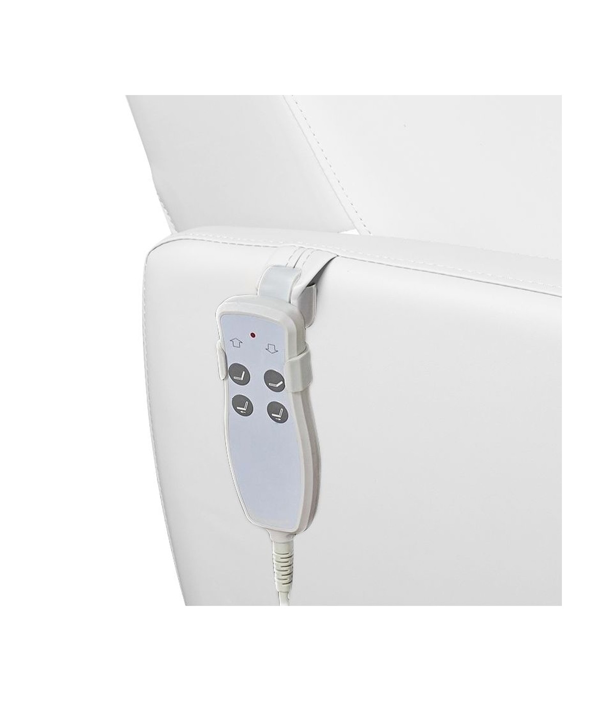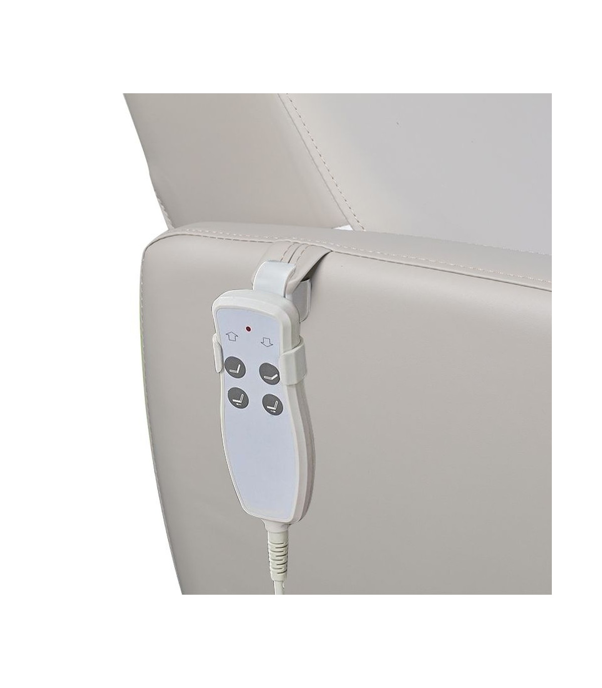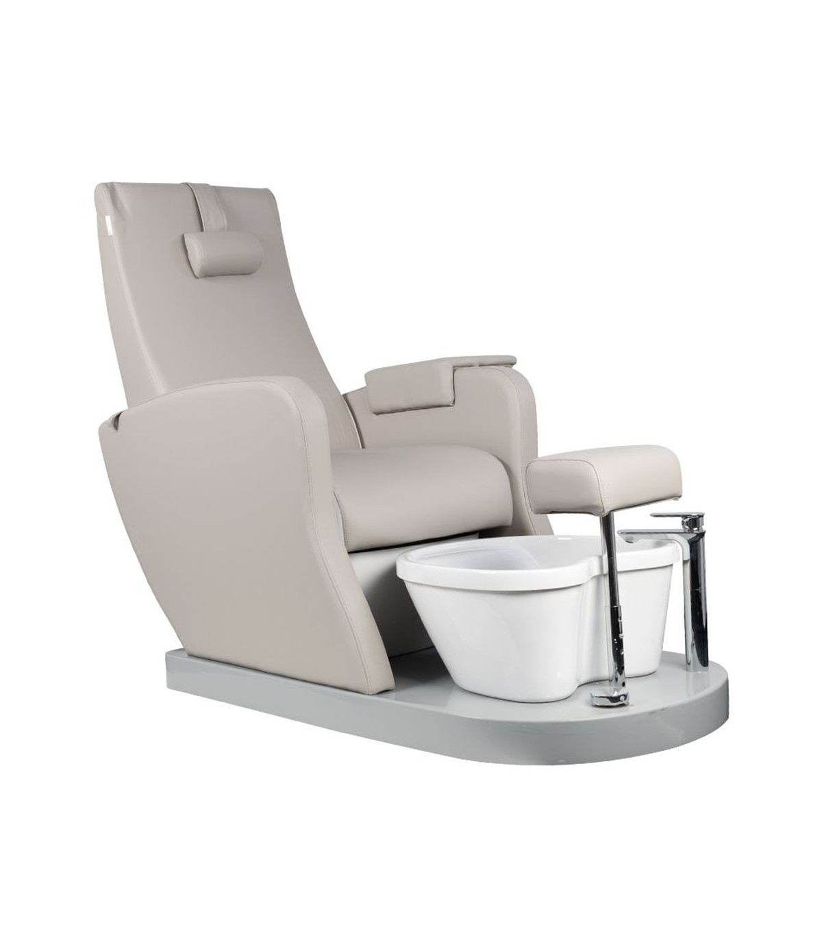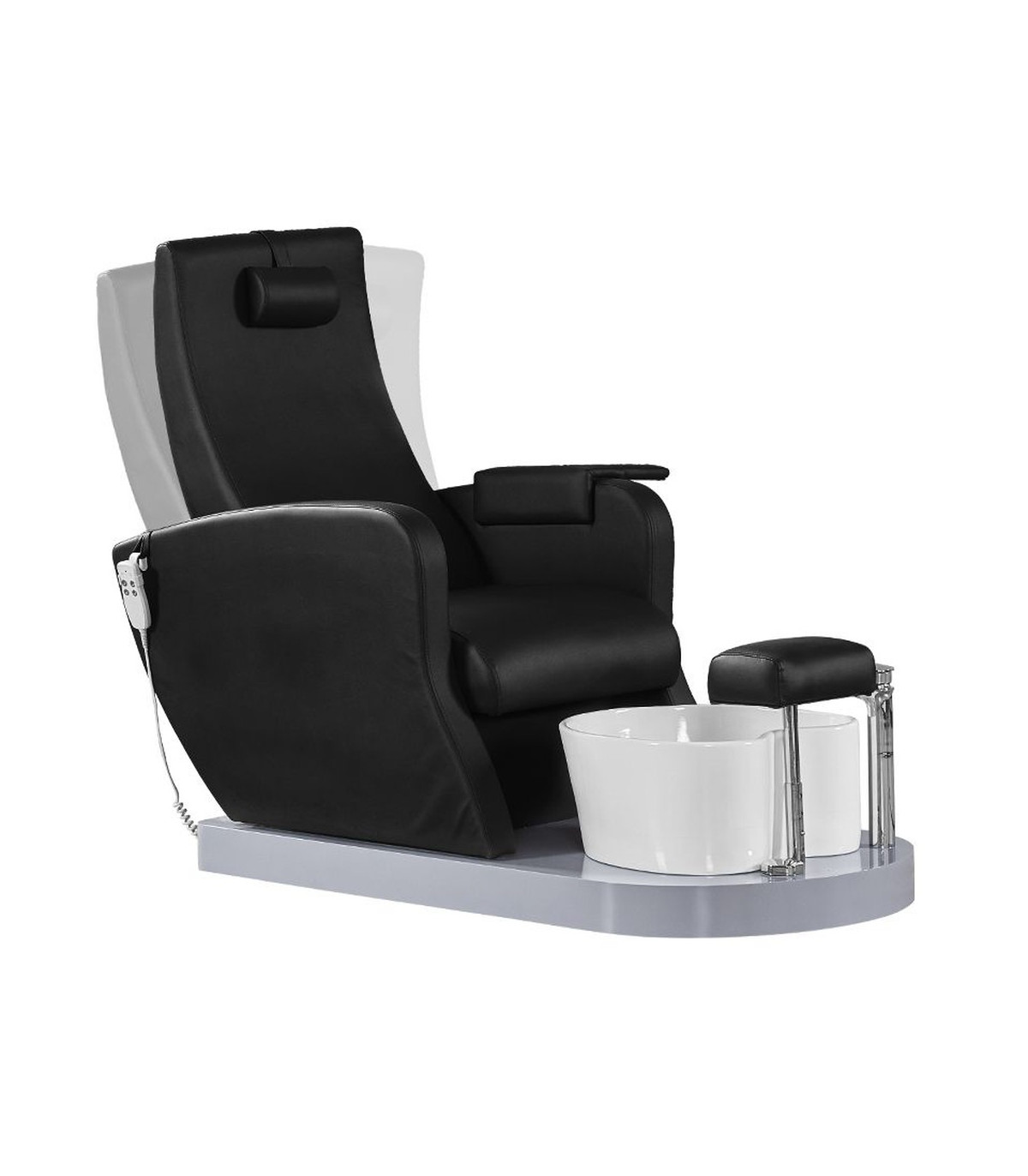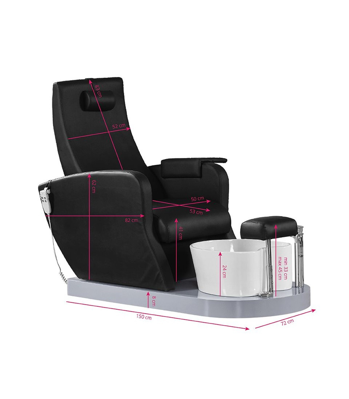 This pedicure chair is equipped with electronic seat controls, backrest tilt adjustment, and front/back adjustment.