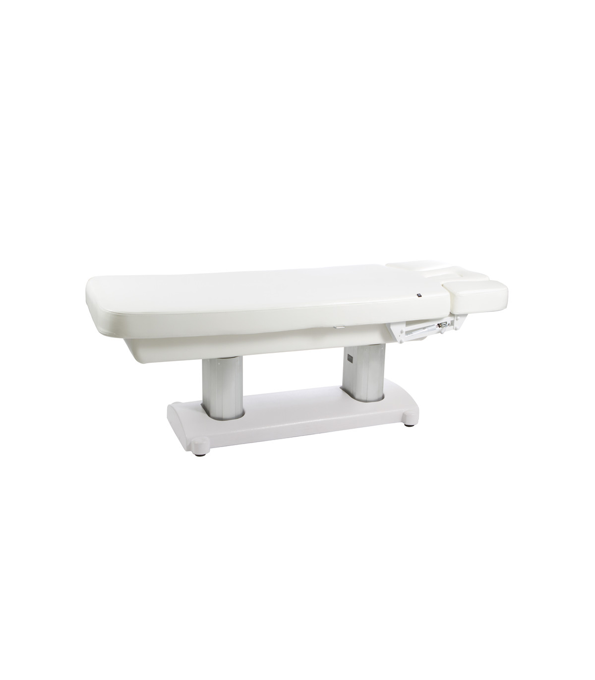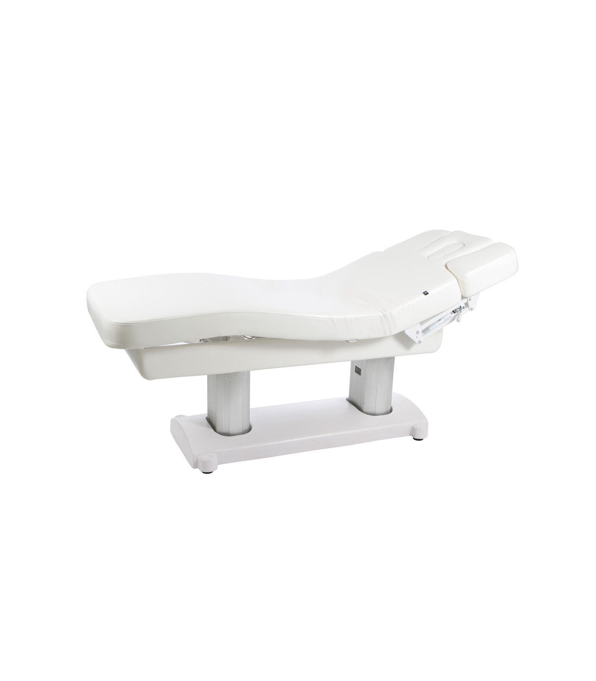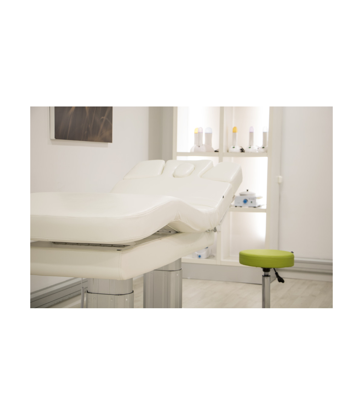 Equipped with 4 motors, this table allows for adjusting the height, backrest inclination, legrest inclination, and the entire table, ensuring that each client can find the most comfortable and suitable position for their treatment. Additionally, its mattress, designed as a single piece and divided into 3 sections, along with high-quality padding, guarantees an unparalleled relaxation experience.