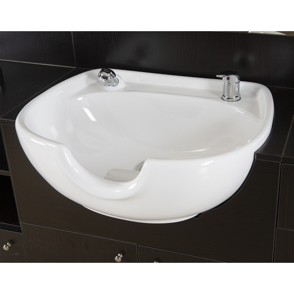 Includes a white ceramic hair washing sink