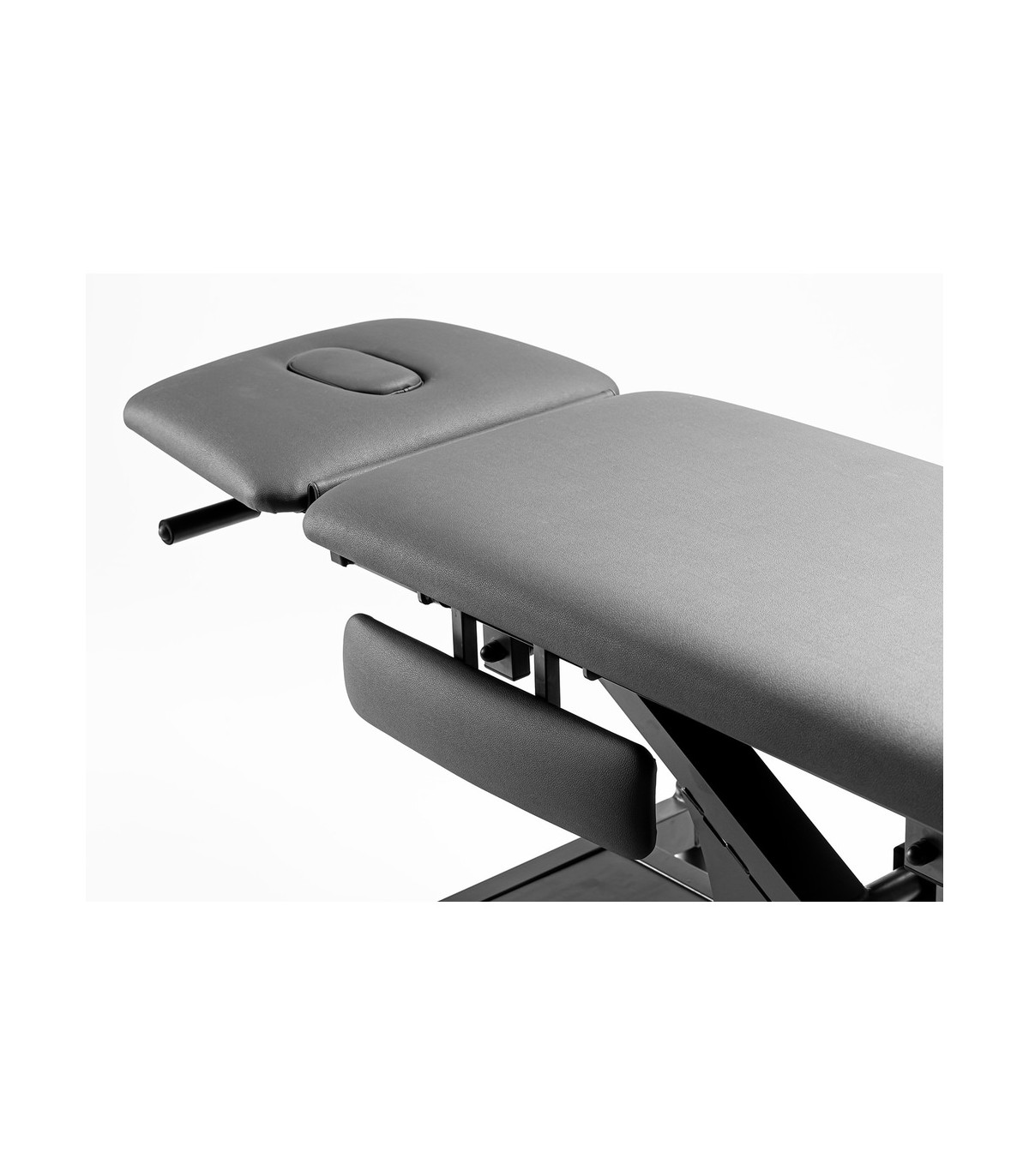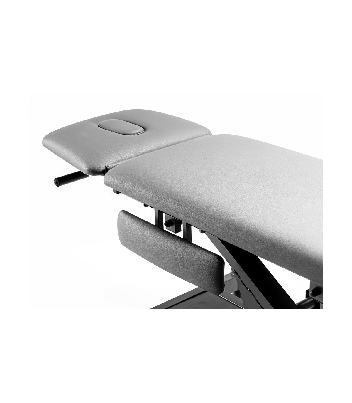 Regarding manual functions, the Bourme Treatment Electric Massage Table doesn't fall short. Adjustable armrests allow for personalized comfort for each patient, while the adjustable headrest, ranging from -45o to +40o, offers unmatched versatility. Both are adjusted using a gas piston, ensuring smooth and precise movements.