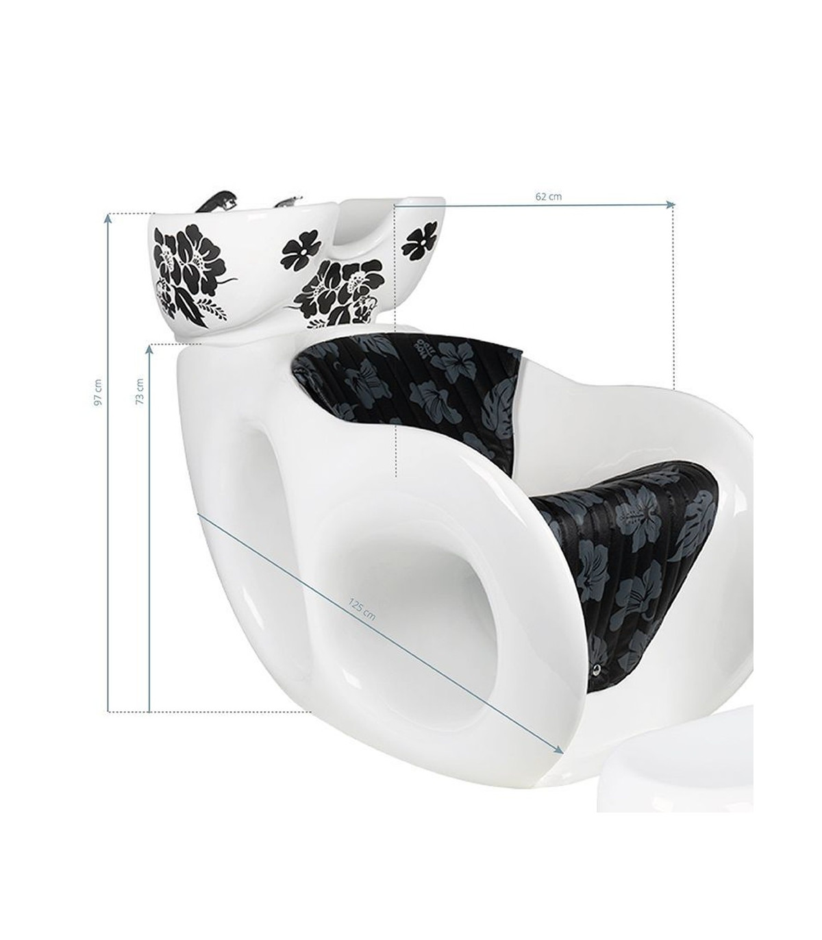 The Flower Backwash Unit, with its unique design and glossy acrylic material finish, is an excellent choice to set your beauty salon apart. It features comfortable upholstery made of high-quality synthetic leather, easy to keep clean, and a movable ceramic basin that adjusts easily to the client's position. Additionally, it includes all the necessary hardware and an acrylic cover that closes aesthetically.