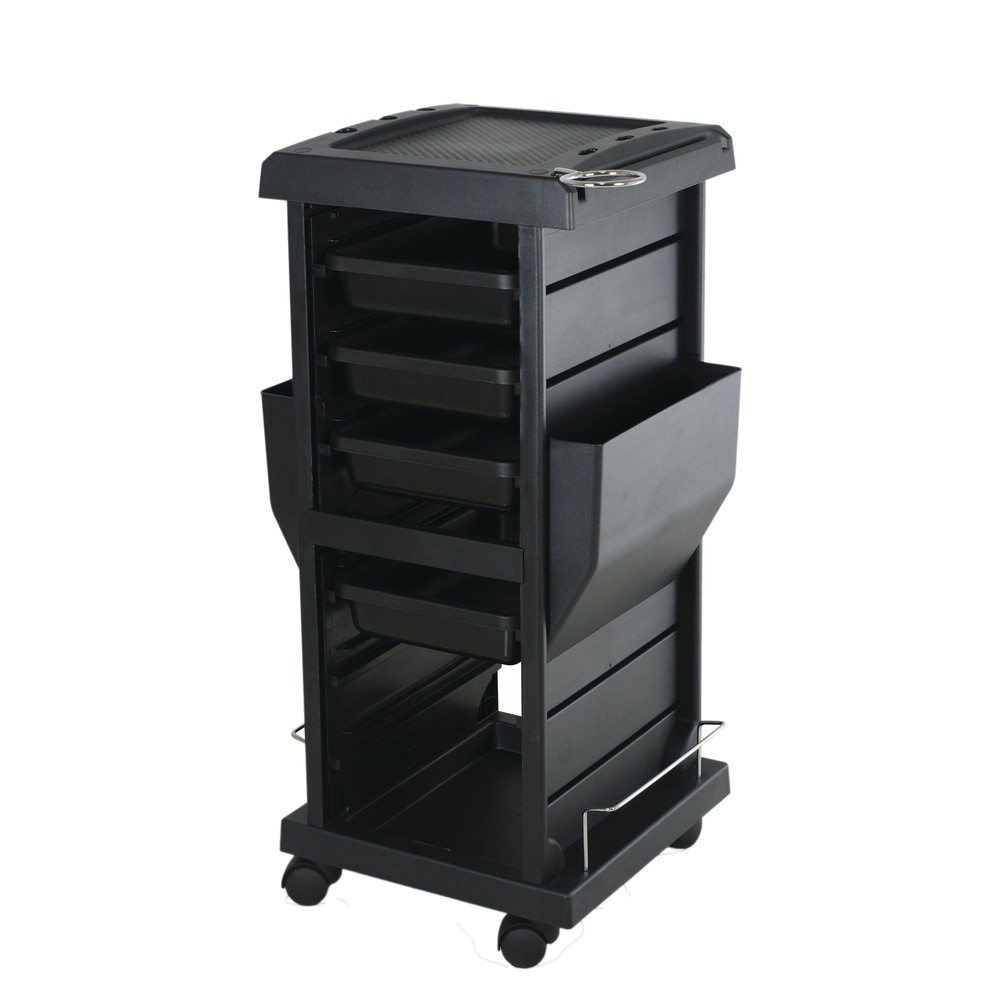 This practical Hairdressing Cart offers four mountable and removable trays, as well as two open slots for product storage. This modular design allows you to customize storage space according to your needs. Additionally, two of these trays can hang from the upper sides of the cart, providing even easier access to your tools.
