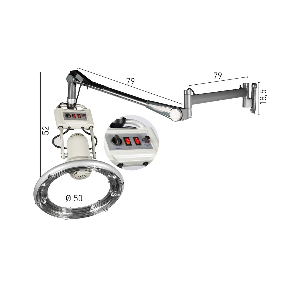 The Infrared Hair Dryer Lamp ID features a rotating circular sphere that allows for greater precision in the heatwave, ensuring that the infrared treatment is distributed evenly and accurately. This level of precision not only enhances the effectiveness of treatments but also ensures a comfortable and safe experience for clients.