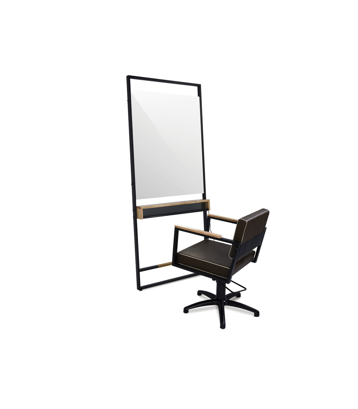 Styling unit for barbershop or hair salon, featuring a simple design inspired by organic awareness.