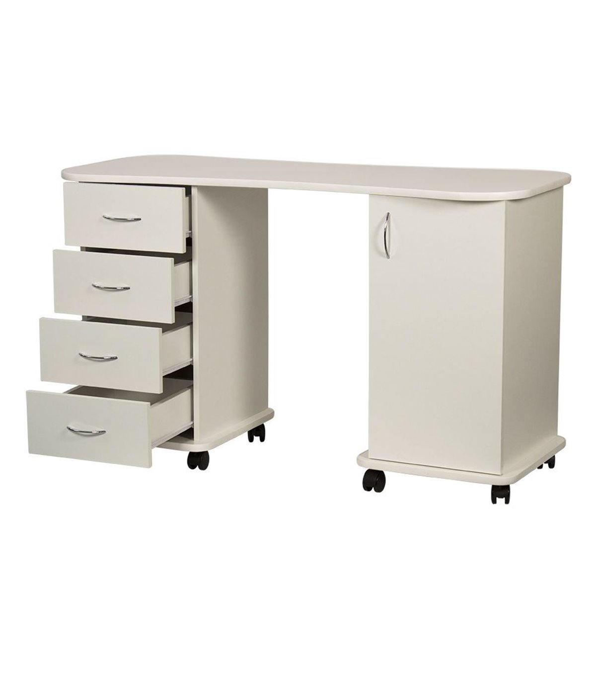 La Mesa de Manicura ofrece un amplio espacio de trabajo para los profesionales de la belleza. Su superficie es lo suficientemente grande para acomodar todos los utensilios y productos necesarios para realizar una manicura, lo que permite a los profesionales trabajar de manera eficiente y sin interrupciones.