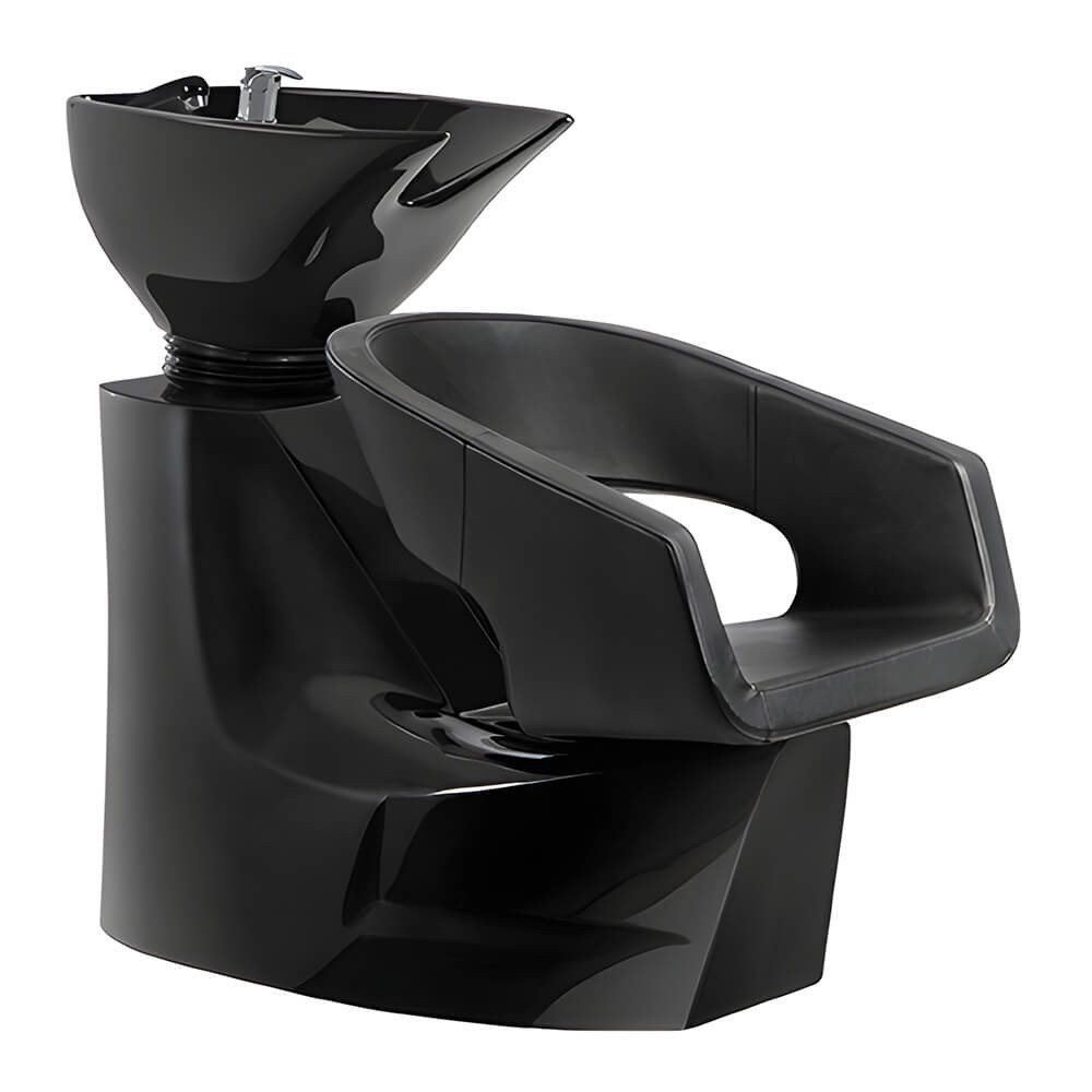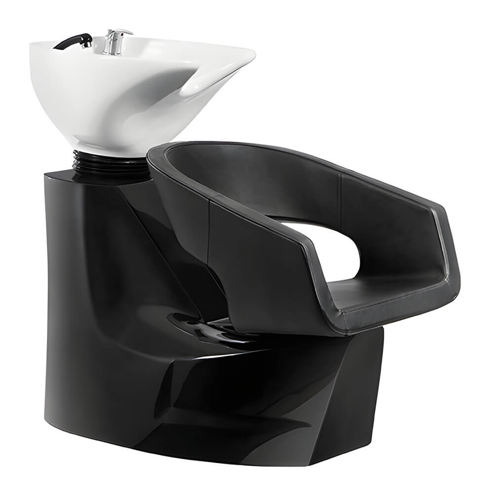 La parte posterior del lavabo tiene forma curva para mejorar la postura del profesional mientras lava el cabello del cliente.