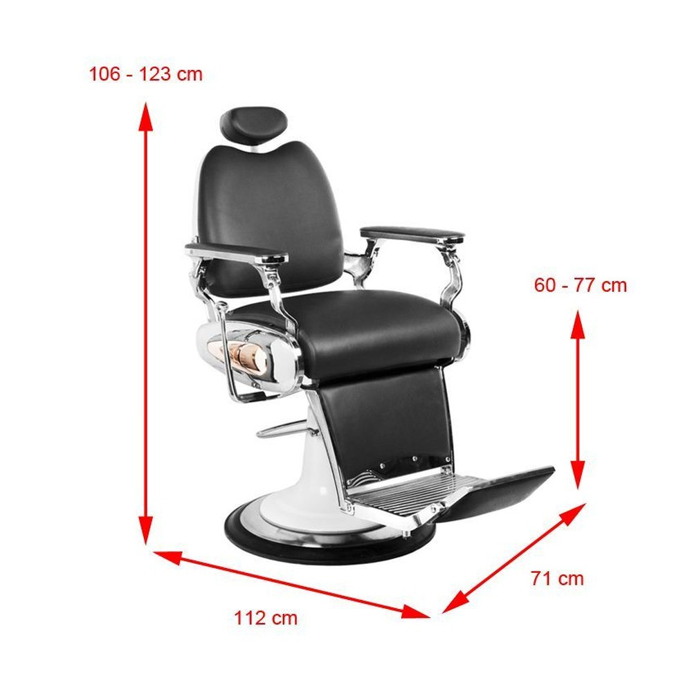 Ce fauteuil va plus loin en offrant une large gamme d'ajustements qui garantissent le bien-être du client et du coiffeur. La hauteur du dossier est réglable, allant de 106 cm à 123 cm, et avec l'appui-tête étendu, elle peut atteindre jusqu'à 140 cm. Il dispose également d'un dossier inclinable et d'un repose-pieds réglable, permettant au client d'être placé dans une position semi-allongée confortable.