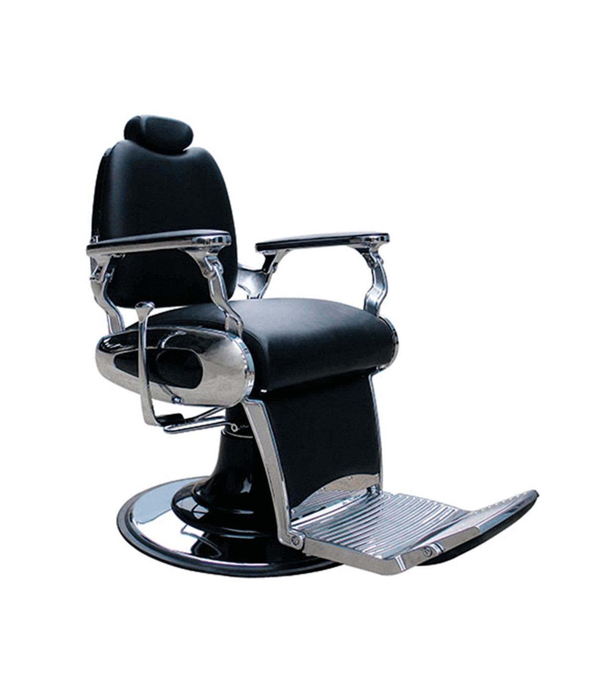 Fauteuil de barbier moderne, revêtu de similicuir ignifuge de haute qualité.