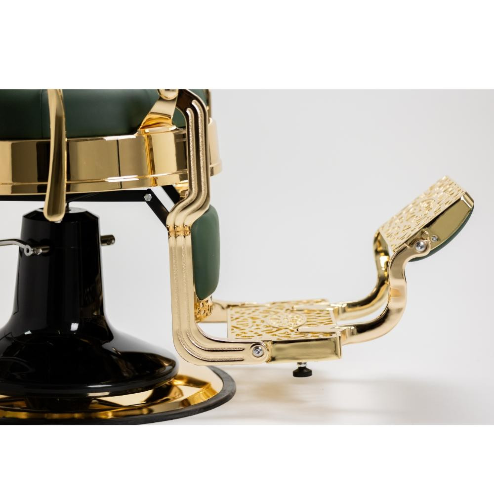 Le fauteuil de barbier style vintage Mack inclut des caractéristiques exclusives comme un porte-serviettes intégré dans la partie inférieure de l'accoudoir et un porte-appui-tête dans la partie inférieure arrière. Ces détails fonctionnels ajoutent de la praticité à l'usage quotidien tout en maintenant l'esthétique élégante et organisée qui caractérise les barbershops professionnels haut de gamme.