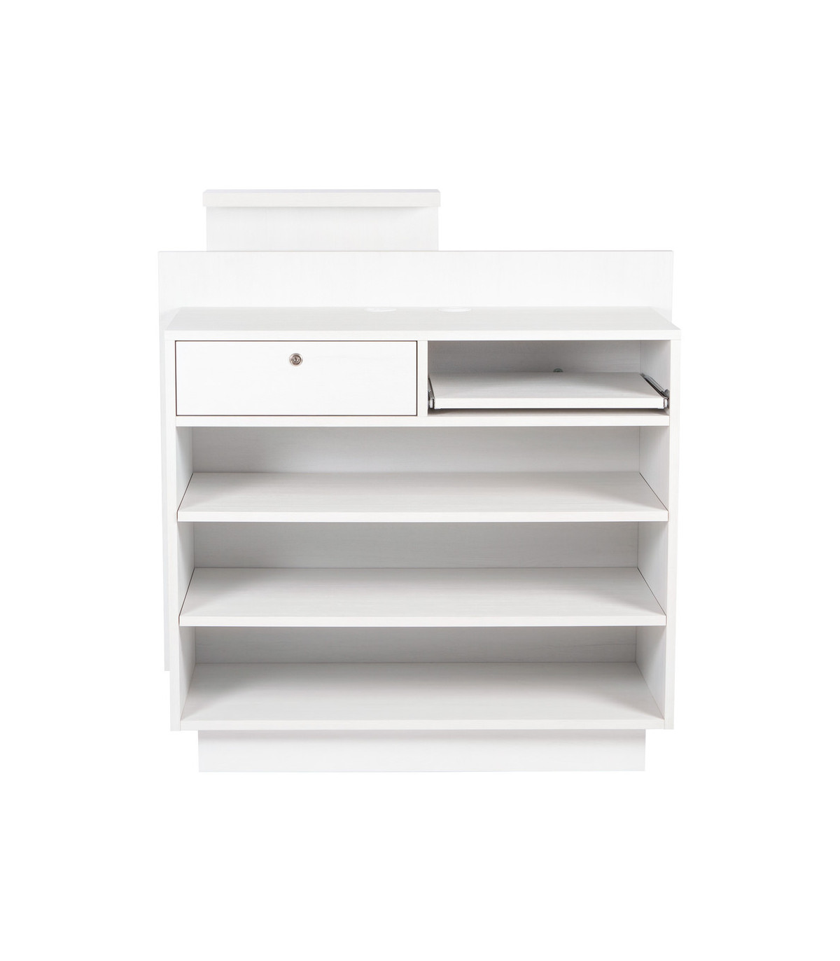 Plateau pour clavier amovible : Cette fonctionnalité est parfaite pour les salons qui gèrent les rendez-vous ou les ventes via un système informatique, facilitant ainsi l'accès et l'utilisation du clavier.
