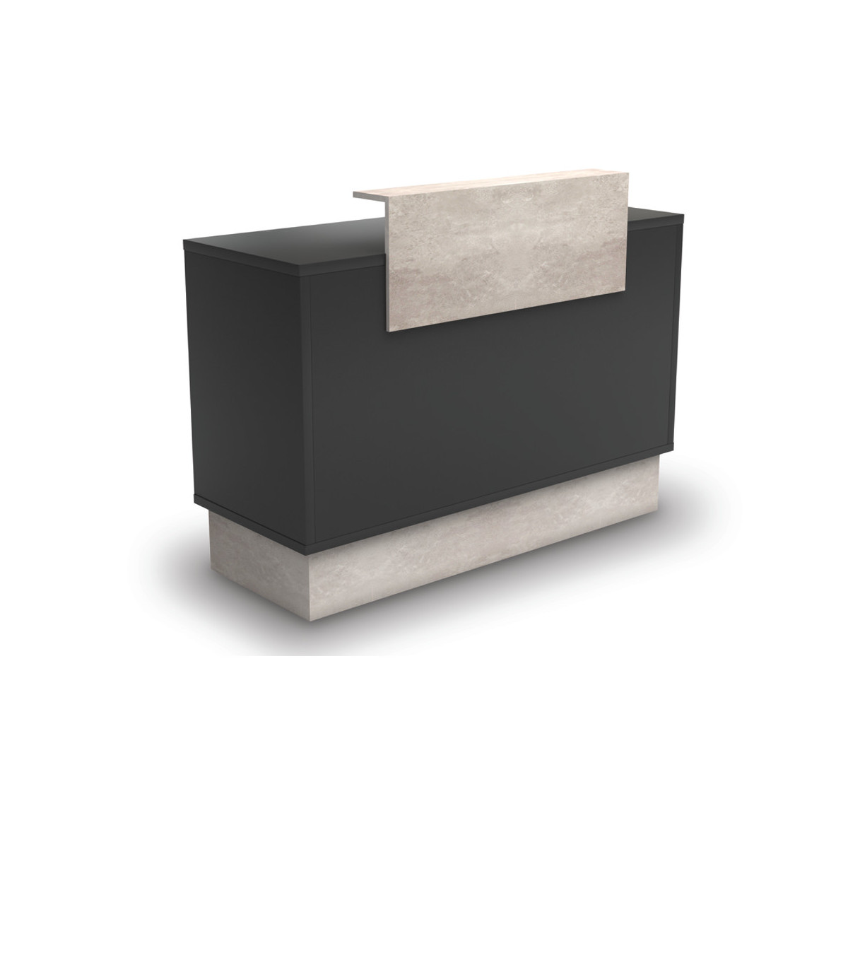 L'Accueil Coiffure Thierry présente un design élégant et minimaliste en mélamine noire de 25 mm d'épaisseur avec des bords arrondis en PVC gris.