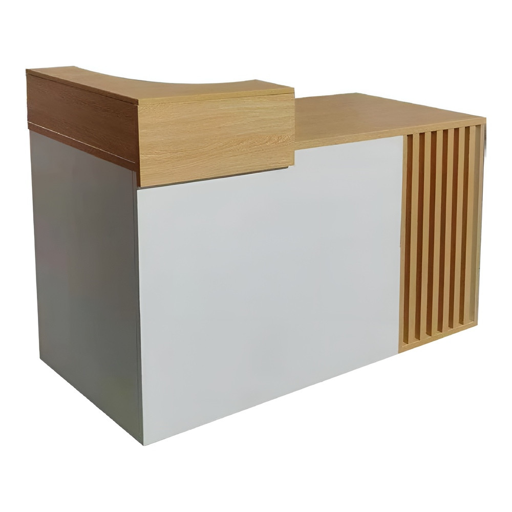 Au-delà de son attrait esthétique, ce comptoir de réception de salon a été conçu en pensant aux besoins quotidiens. Il offre des espaces de rangement stratégiquement situés, idéaux pour garder les choses organisées et facilement accessibles pour la gestion des clients et des services.