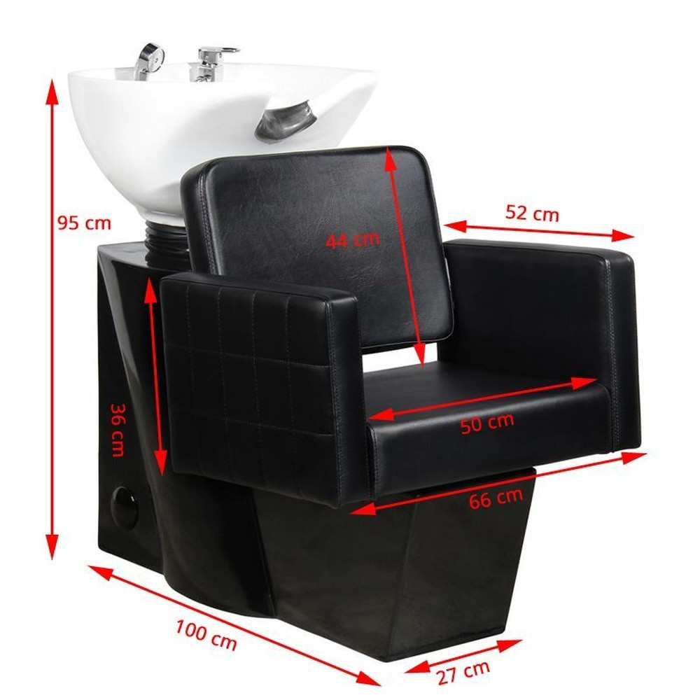 Le confort des clients est une priorité dans tout salon de coiffure. C'est pourquoi ce bac à shampoing a été conçu avec une construction spéciale qui offre un soutien solide à la tête pendant le lavage. Le siège, revêtu d'éco-cuir de haute qualité en noir, est doux et extrêmement confortable, garantissant une expérience relaxante pour vos clients.