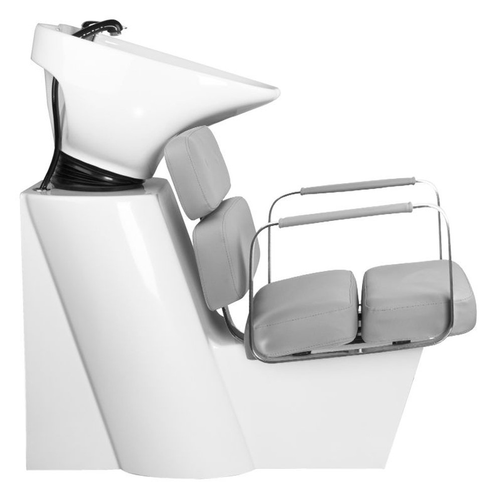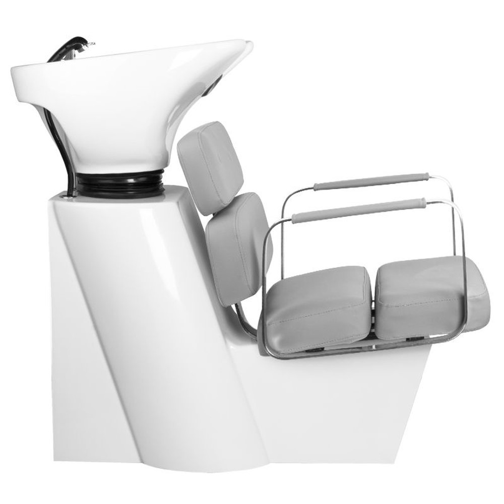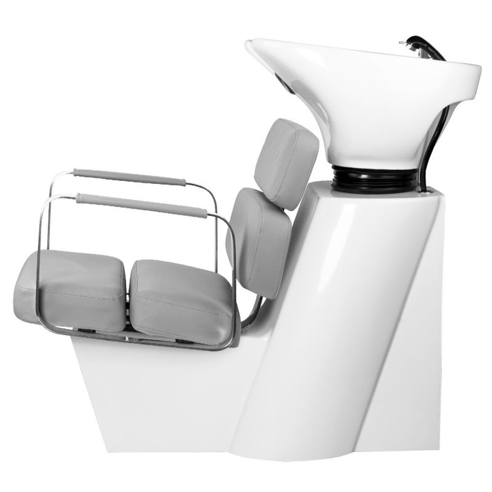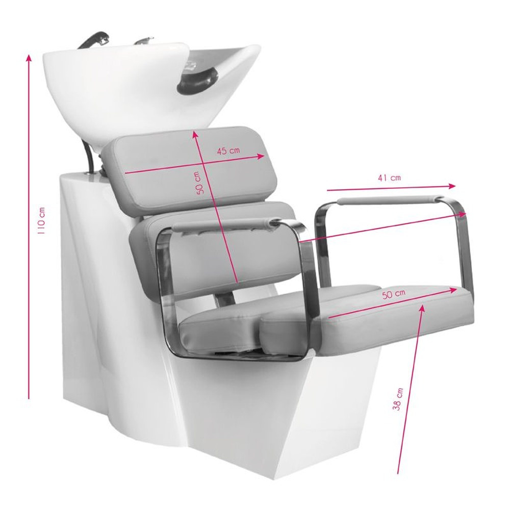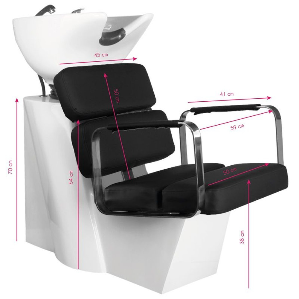 Le Bac à Shampoing pour Salon de Coiffure à Porto se distingue par son design moderne et élégant. Il est fabriqué à partir des matériaux de la plus haute qualité et présente une finition impeccable. Le siège est doux et extrêmement confortable, recouvert d'éco-cuir de haute qualité en noir. Cette unité de lavage est équipée d'un bassin en céramique blanche et d'accoudoirs de couleur argent, ce qui en fait le mobilier idéal pour les intérieurs modernes.
