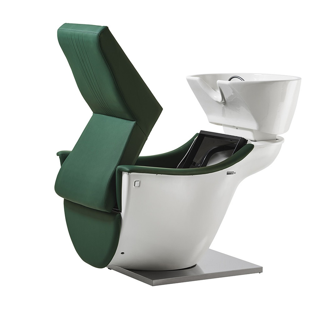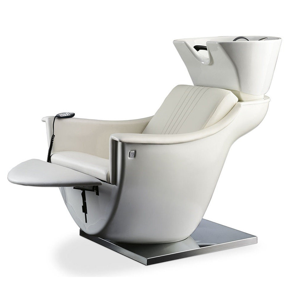 Pour ceux qui recherchent le niveau ultime de relaxation, la version Massage est le choix parfait. Ce fauteuil de coiffure dispose d'une structure en polyuréthane blanc, d'un bassin en céramique inclinable avec un socle en acier poli et d'un repose-jambes réglable électriquement. Dans ce fauteuil particulier, le design POD se fusionne avec la technologie de massage par air, créant un fauteuil en tapisserie skai aux lignes élégantes, capable de fournir juste la bonne quantité de relaxation avec un siège de massage intégré.