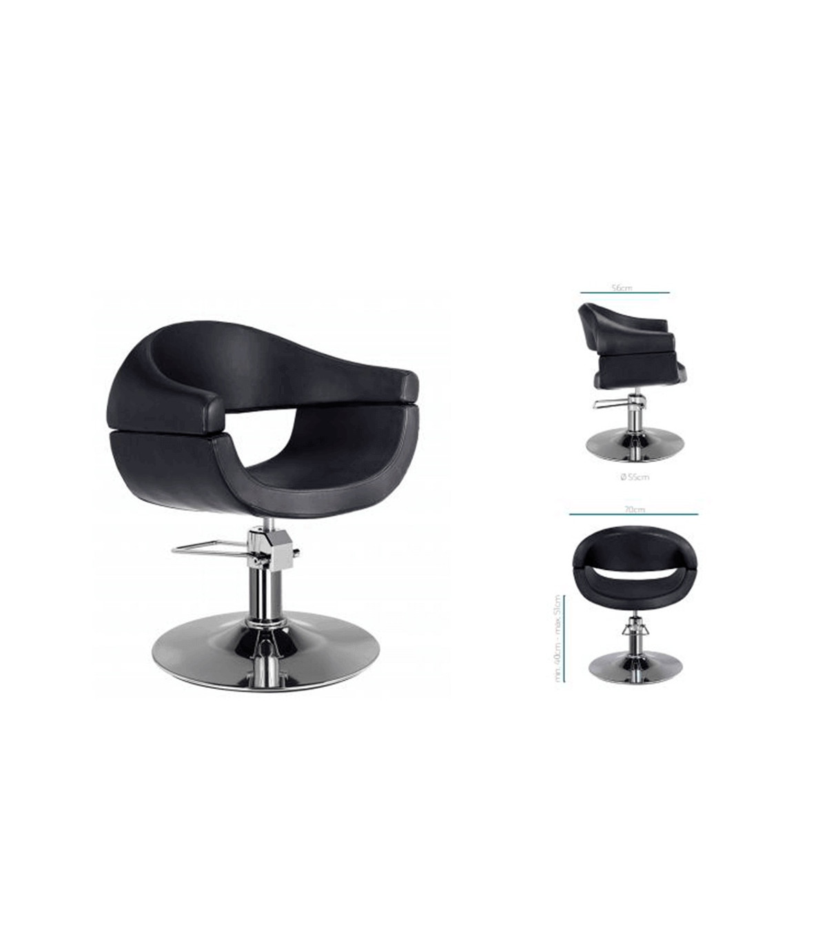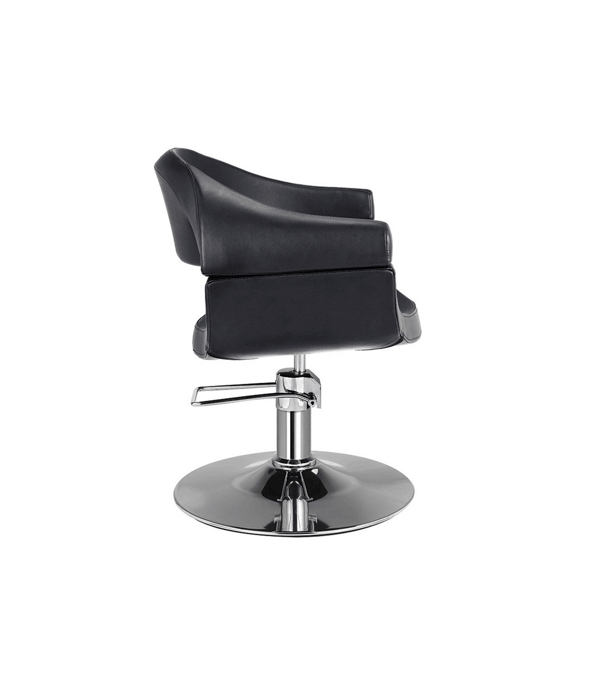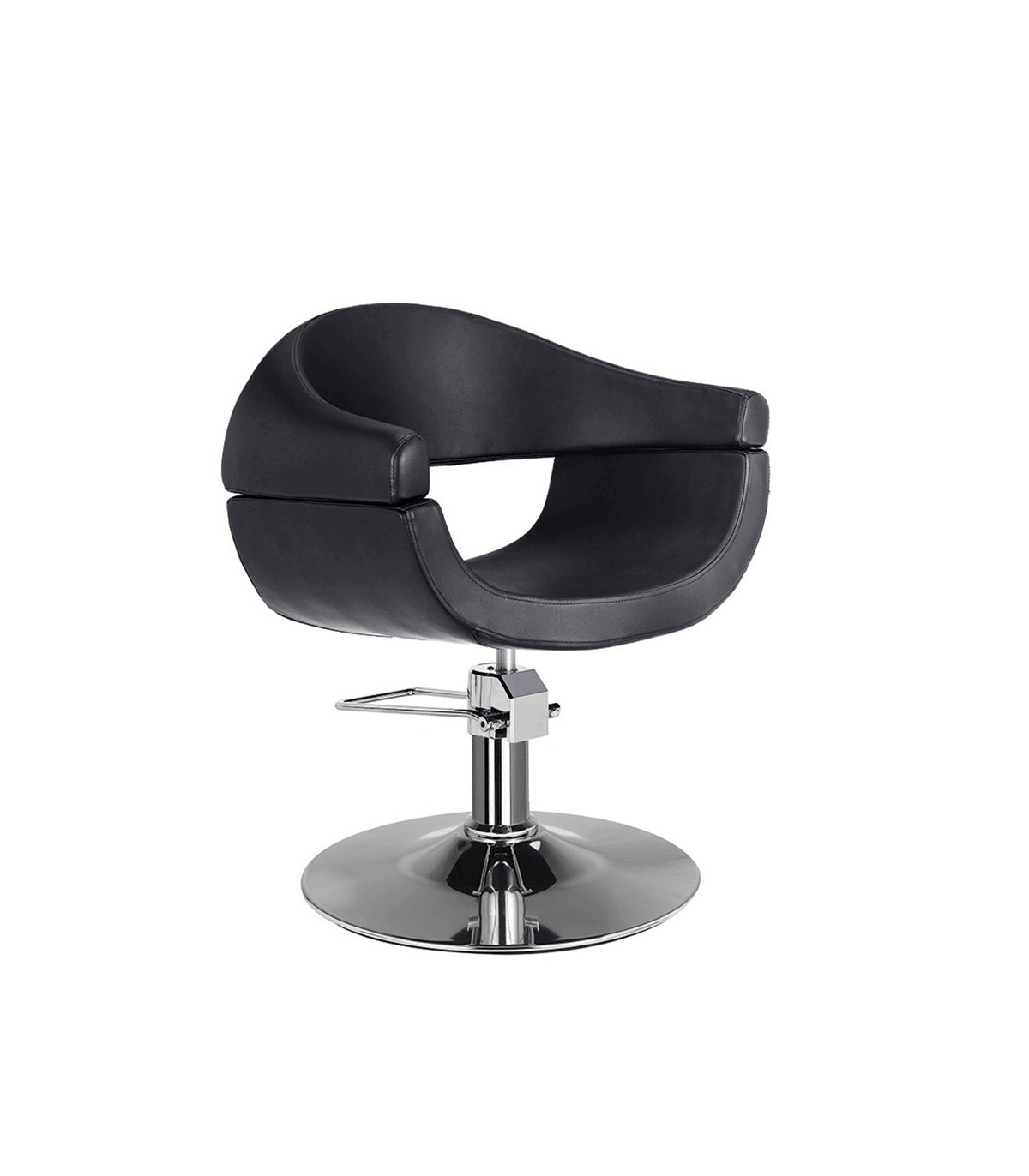 Un fauteuil de coiffure conçu avec des lignes arrondies élégantes. Il est exempt d'espaces entre l'assise et le dossier, empêchant ainsi l'accumulation de cheveux coupés.