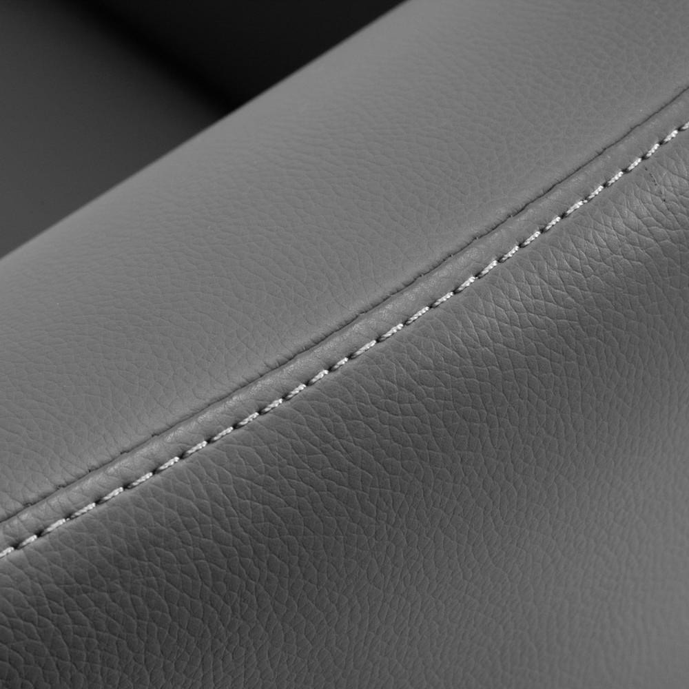 Le revêtement est fait de cuir synthétique résistant à l'humidité, durable et facile à nettoyer. Les tons gris et les surfaces métalliques laquées en couleurs dorées ajoutent une expression d'élégance intemporelle.