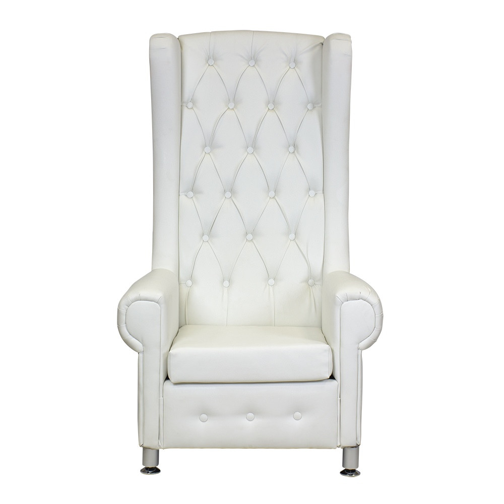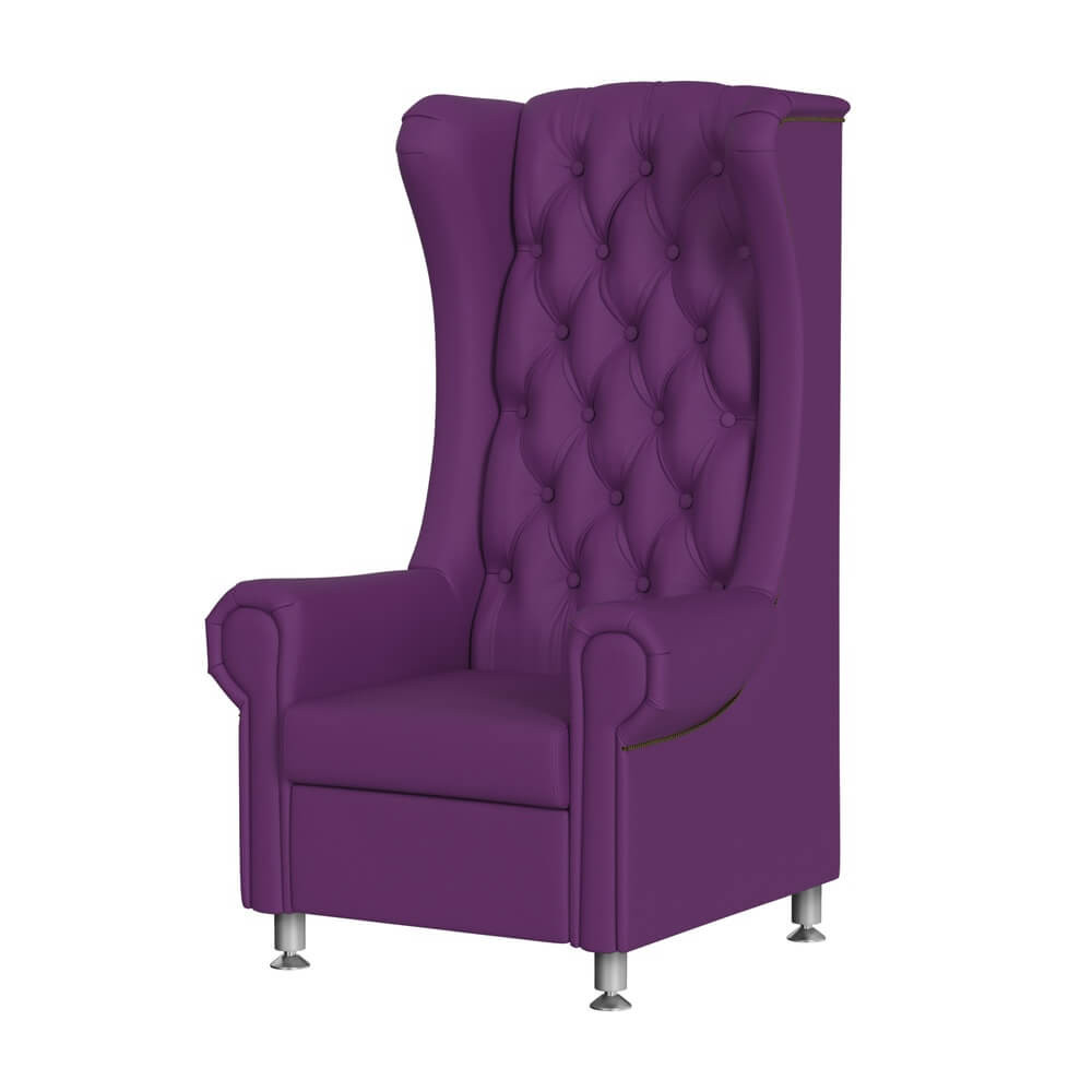 Le fauteuil a quatre pieds, ce qui permet d'ajuster sa hauteur pour répondre aux besoins de chaque client. Le dos du Fauteuil Pédicure Tron, haut et majestueux, rappelle un véritable trône. La garniture Capitoné, nouée à la main avec des boutons de la couleur de la garniture, et le passepoil de clou de girofle comme détail décoratif ajoutent une touche d'élégance et de sophistication.