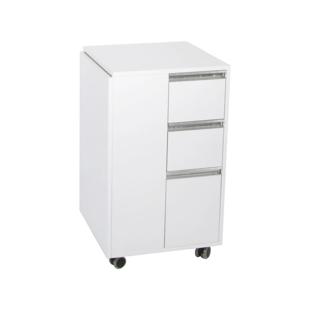 Équipée de trois tiroirs et de roues avec dispositif de blocage