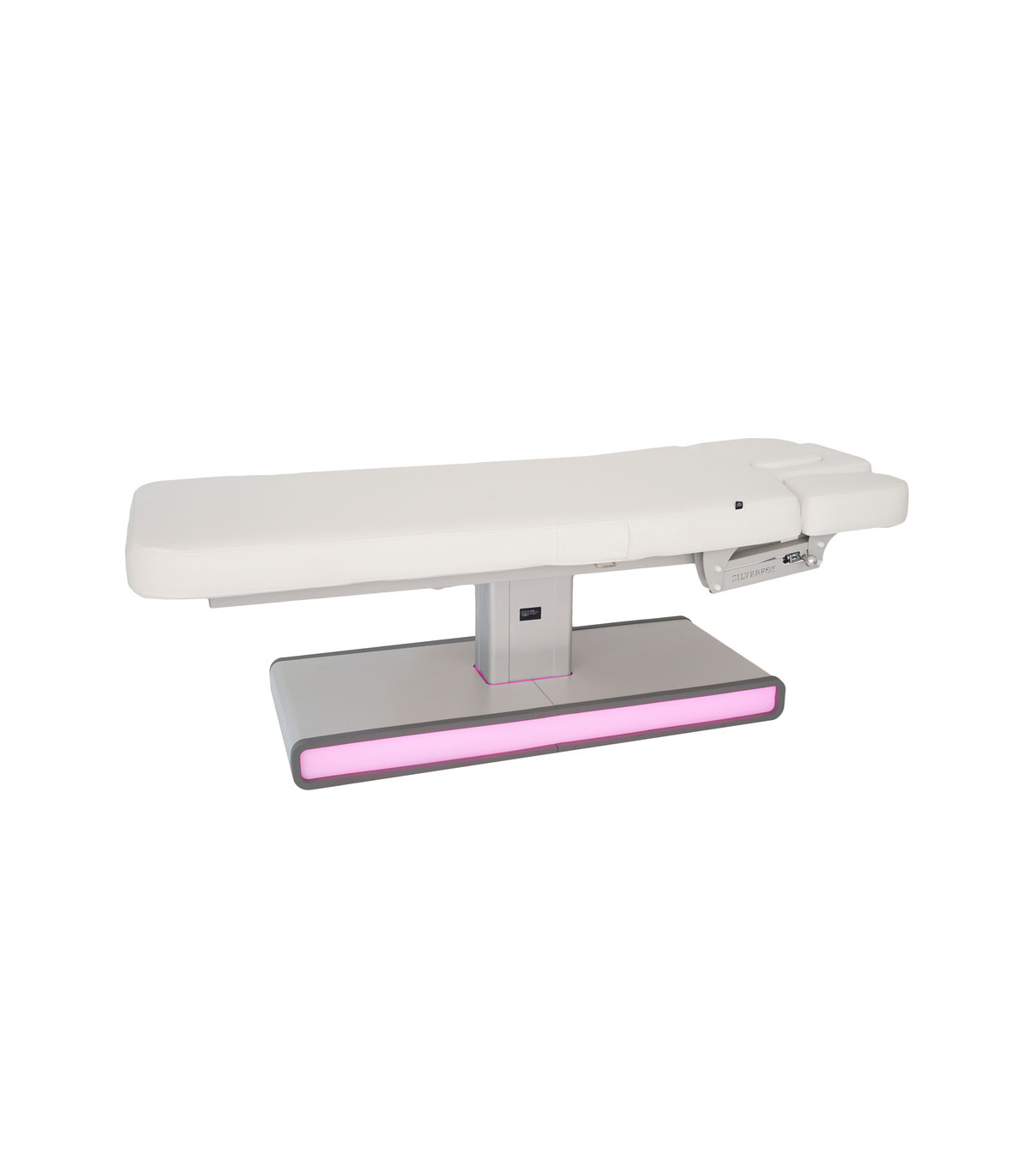 Équipée de 3 moteurs, cette table permet le réglage de la hauteur, de l'inclinaison du dossier et du repose-pieds, garantissant à chaque client de trouver la position la plus confortable pour son traitement. De plus, son matelas en une seule pièce, divisé en 3 sections, associé à un rembourrage très confortable, assure une expérience relaxante et agréable pour le client.