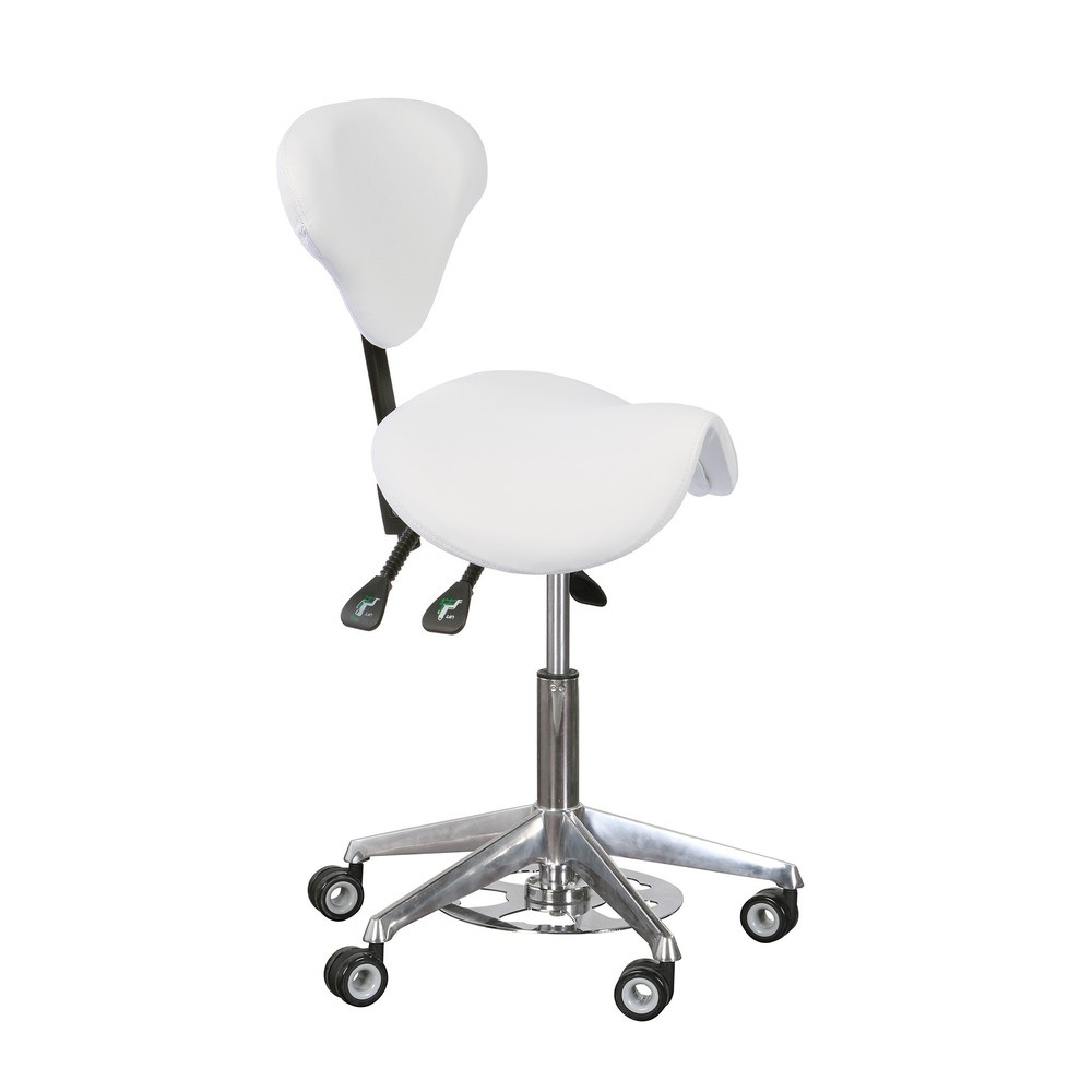Le Tabouret Esthétique Batri Adapt est doté d'une hauteur réglable grâce à son piston à gaz. Ce mécanisme peut être facilement contrôlé par une poignée de commande et un pédale, permettant au professionnel d'ajuster la hauteur du tabouret à sa convenance. Cette caractéristique assure une posture ergonomique et réduit la tension dans le dos et les jambes pendant de longues heures de travail.