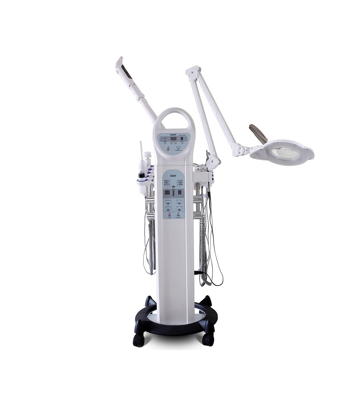 - Oferece várias funções para tratamentos de beleza e estética, controláveis por um painel integrado.