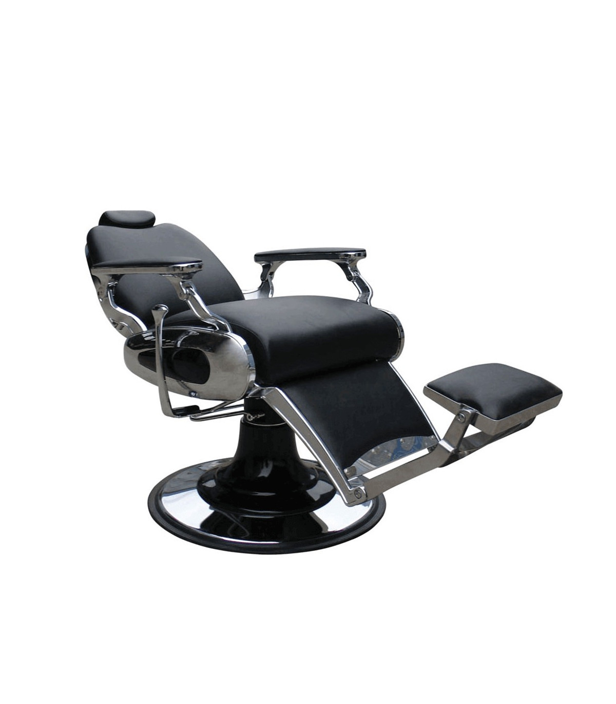 Com uma base redonda e construída em metal cromado, a estabilidade da cadeira é garantida, assegurando que o cliente permaneça seguro enquanto usufrui dos serviços da barbearia.