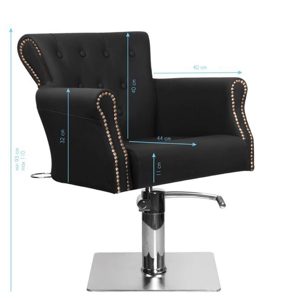 A Cadeira de Cabeleireiro Ber distingue-se pelo seu design estilizado e elegante. O seu revestimento em eco-pele de alta qualidade em cor preta confere-lhe um aspeto luxuoso e sofisticado. Esta cadeira de cabeleireiro não é apenas atraente visualmente, mas também extremamente confortável, garantindo que os seus clientes se sintam relaxados e mimados durante a visita ao seu salão.