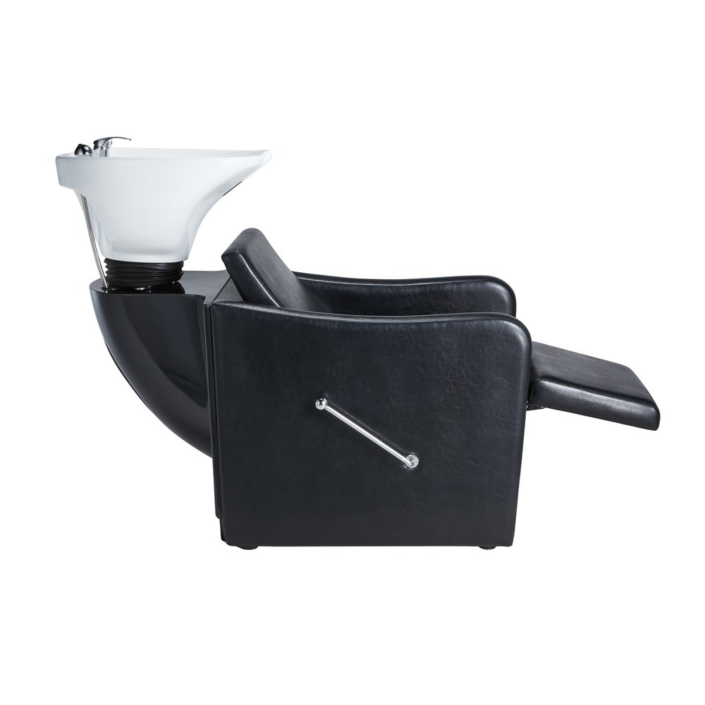 Para além disso, possui uma bacia de cerâmica de alta qualidade disponível em branco ou preto, montada num mecanismo oscilante. Este design inovador faz com que a bacia se adapte à forma e posição da cabeça do cliente, garantindo uma experiência de lavagem serena e agradável.
