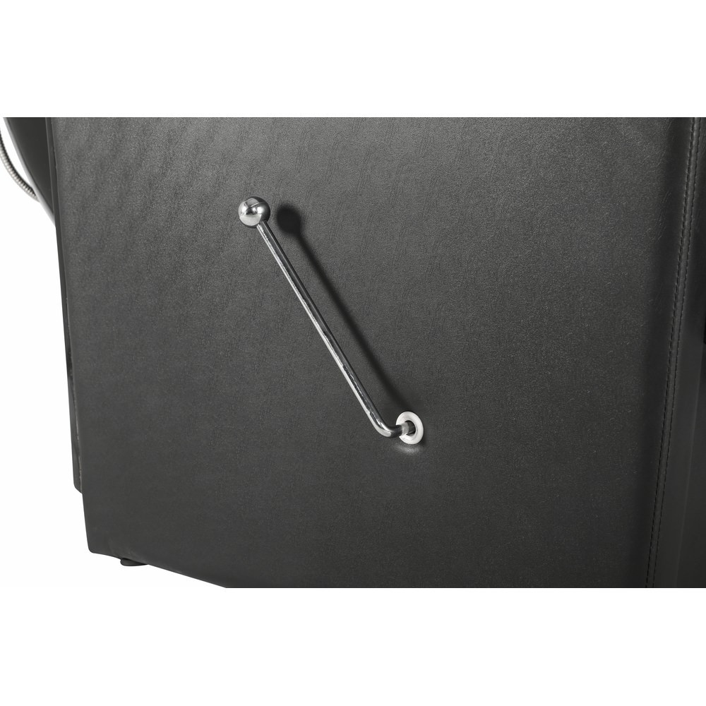 Revestido com poli-pele de PVC retardador de chamas na cor preta, a Rampa de Lavagem Jordan oferece um toque sofisticado ao seu mobiliário de cabeleireiro. Este material não só confere uma estética superior ao seu salão, mas também garante a segurança e durabilidade do produto.
