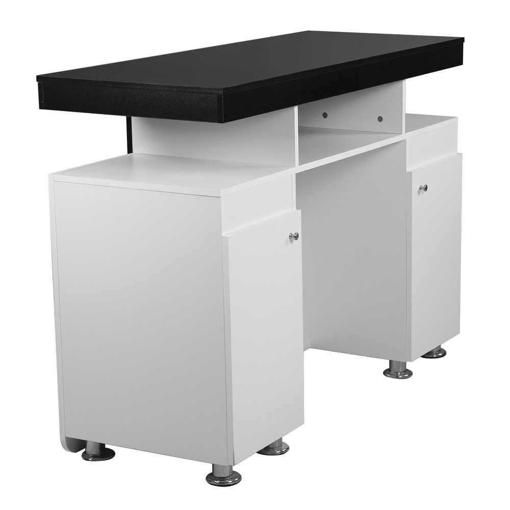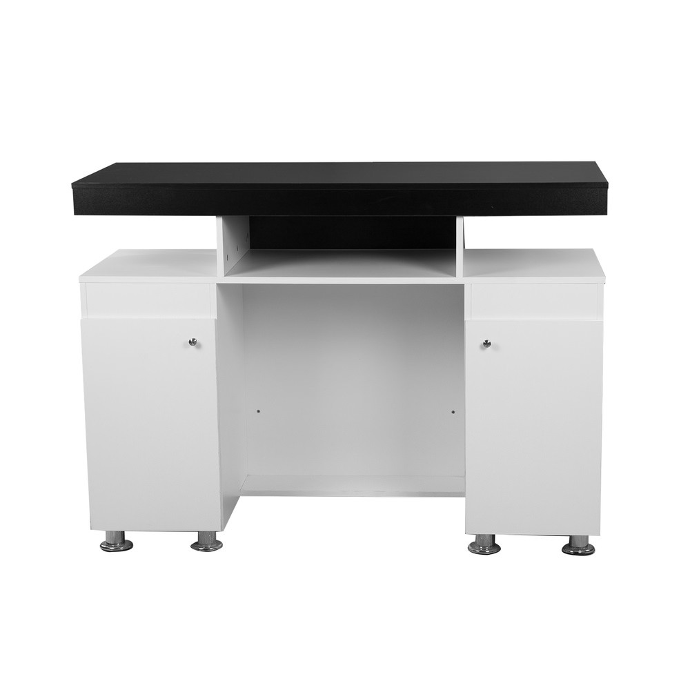 Um dos maiores desafios em qualquer negócio é a organização. O Recepção Cabeleireiro Buddy 2 oferece amplo espaço de armazenamento: dois gavetões sob a bandeja extraível, prateleiras abertas para produtos à vista do cliente e dois armários laterais para itens maiores.