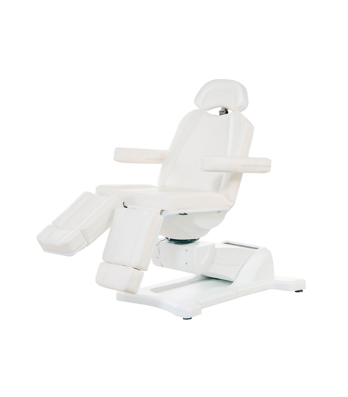 Em termos de funcionalidade, esta cadeira de pedicure possui cinco motores que permitem ajustar a altura da cadeira, a inclinação do encosto e a posição dos apoios de pés. Inclui também um comando de controle e um pedal para facilitar estes ajustes.