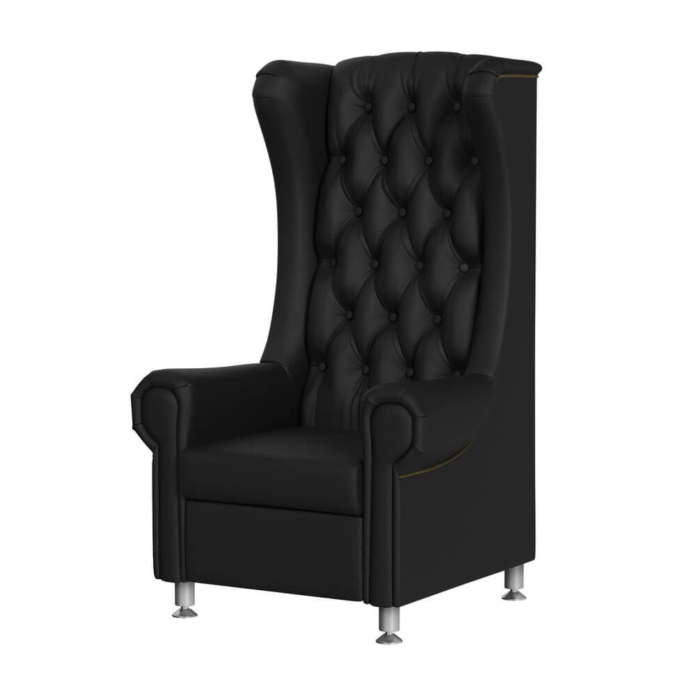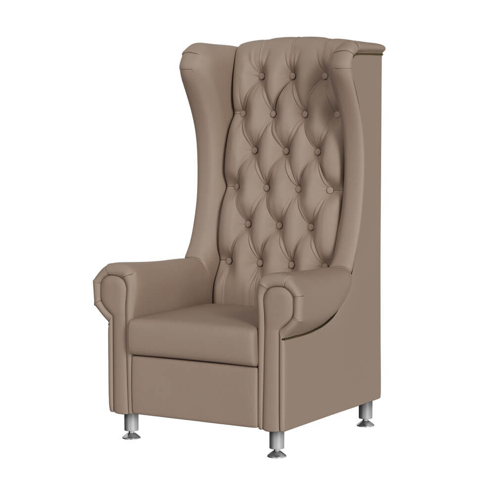 A cadeira conta com quatro pernas, que permitem ajustar a sua altura para se adaptar às necessidades de cada cliente. A parte traseira da Cadeira Para Pedicure Elétrico Tron, alta e majestosa, faz lembrar um verdadeiro trono. O estofamento Capitoné, atado à mão com botões na cor da estofagem, e o detalhe decorativo do friso de cravo, adicionam um toque de elegância e sofisticação.