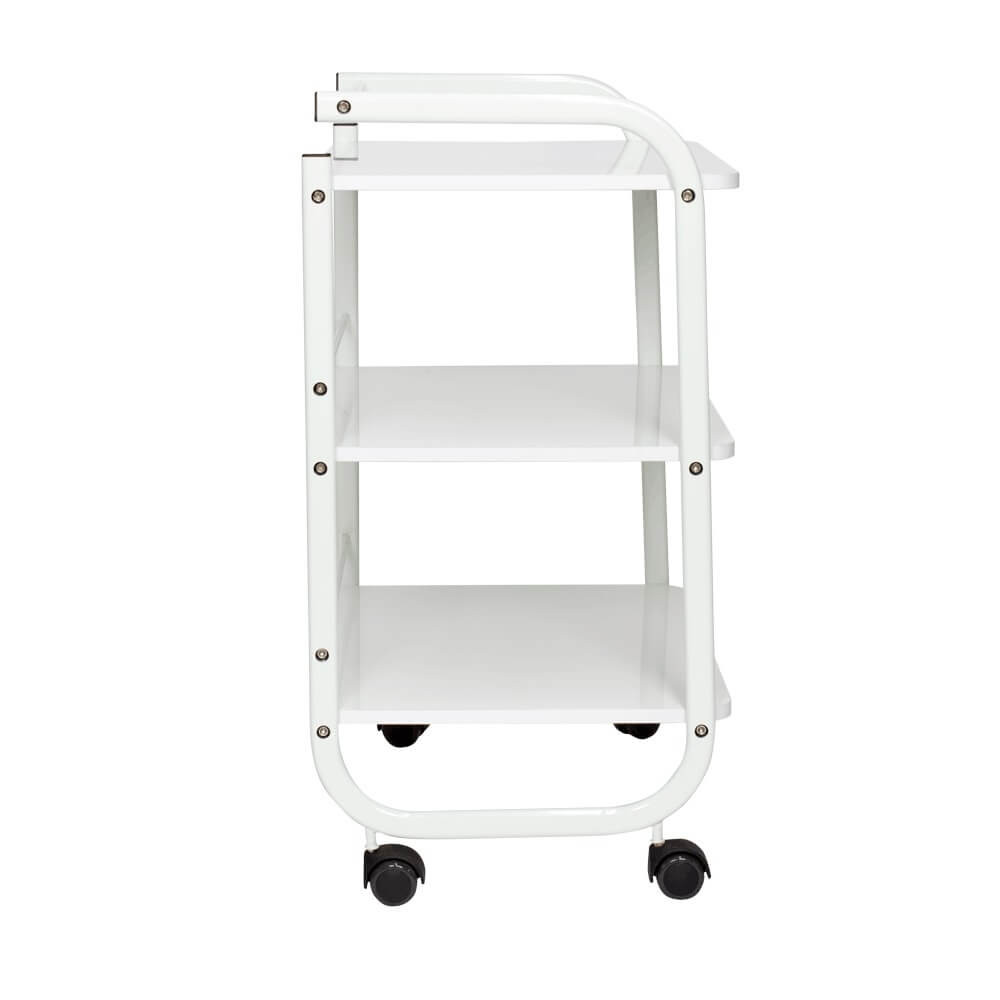O design do Carrinho Cabeleireiro Elsa combina elegância e praticidade. Seu acabamento branco e linhas limpas se integram perfeitamente em qualquer salão de beleza ou spa. Além disso, seu design prático inclui vários compartimentos e prateleiras que permitem que você organize suas ferramentas e produtos de forma organizada.