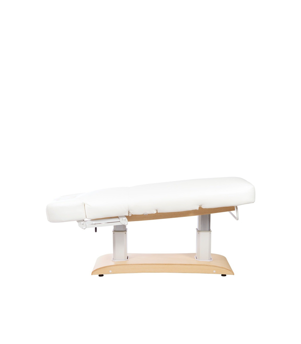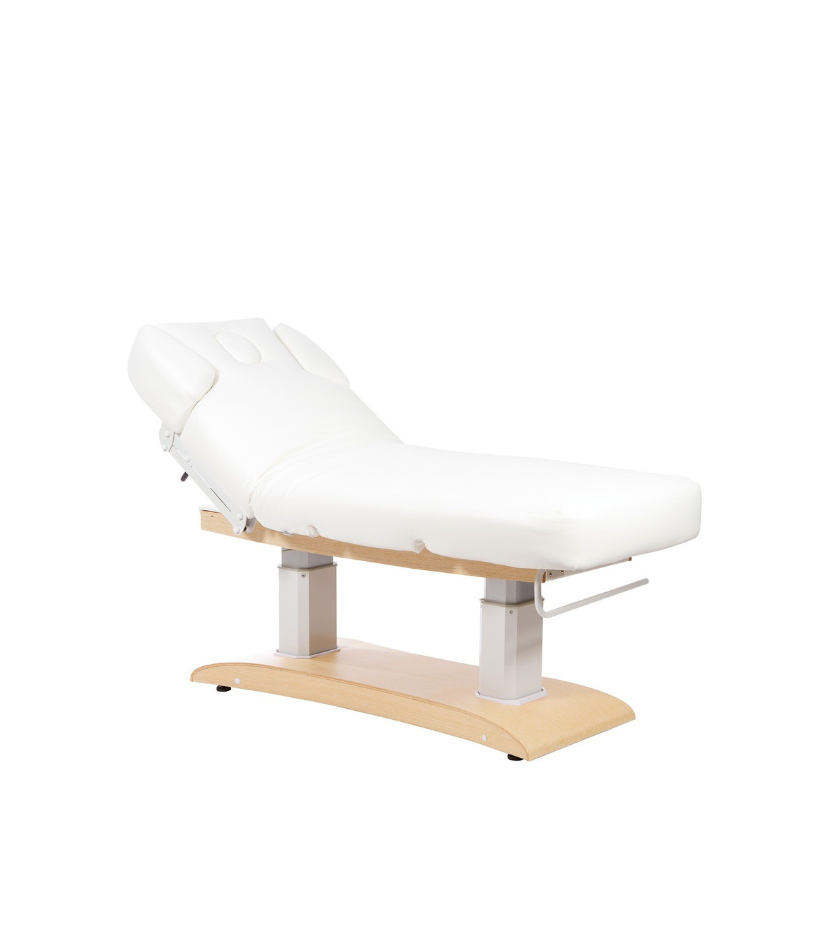 A camilla também vem com um controle remoto que permite ao profissional do spa ajustar as funções motorizadas da camilla com facilidade. Além disso, a camilla inclui um orifício facial, posições memorizadas e um porta-rolhas.