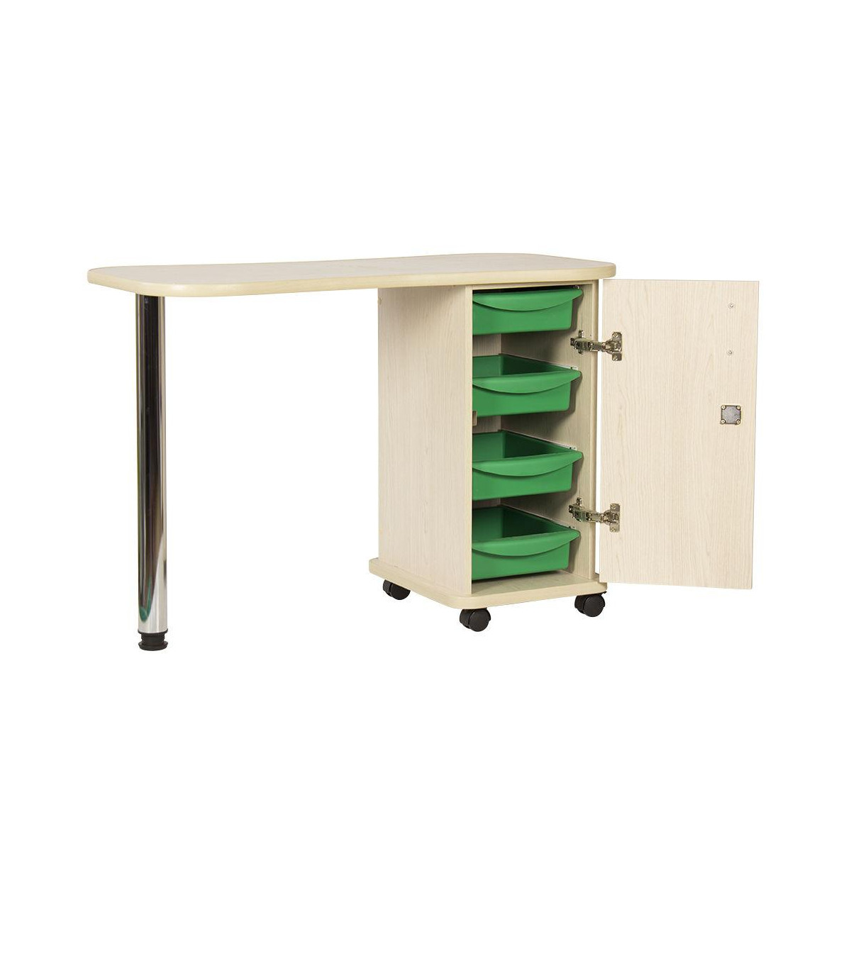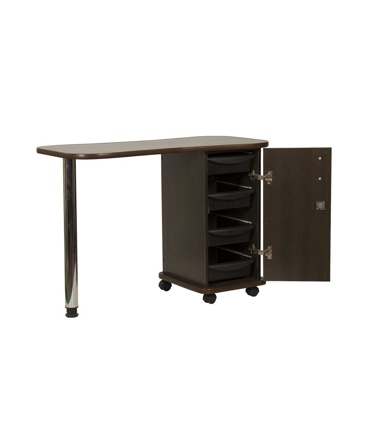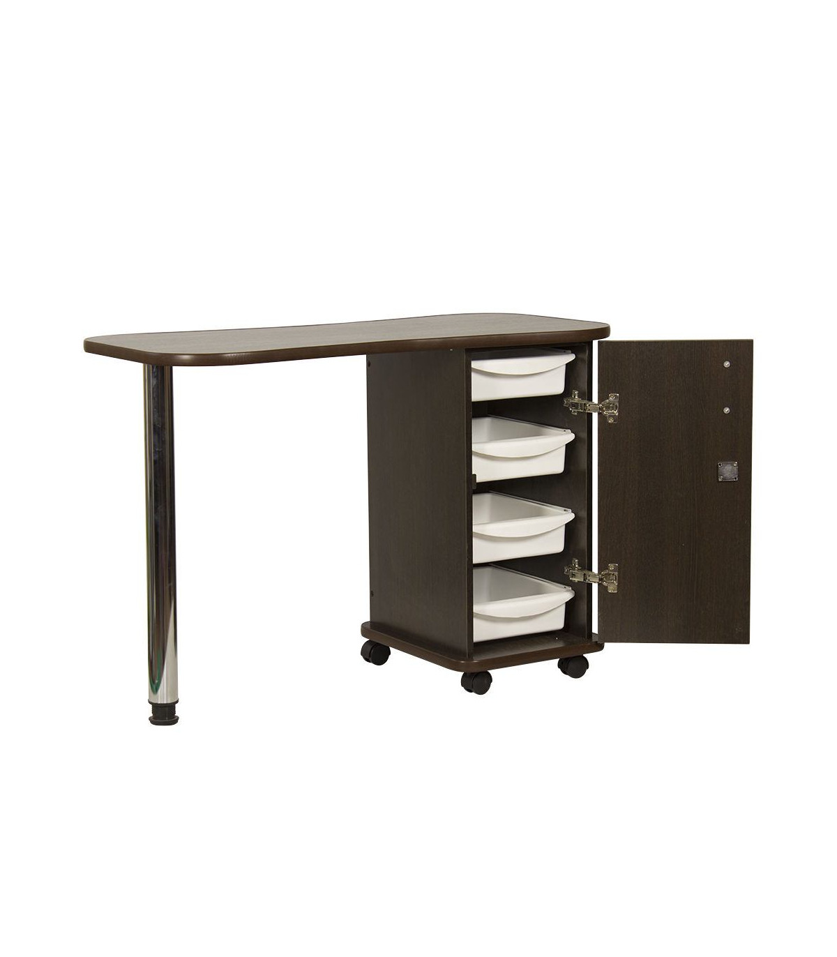 Fabricada com materiais de alta qualidade, esta mesa de unhas garante durabilidade e resistência. Sua ampla e confortável superfície de trabalho permite que os profissionais realizem seu trabalho com facilidade, enquanto seus diversos compartimentos de armazenamento oferecem um espaço organizado para guardar todos os utensílios e produtos necessários para o serviço de manicure.
