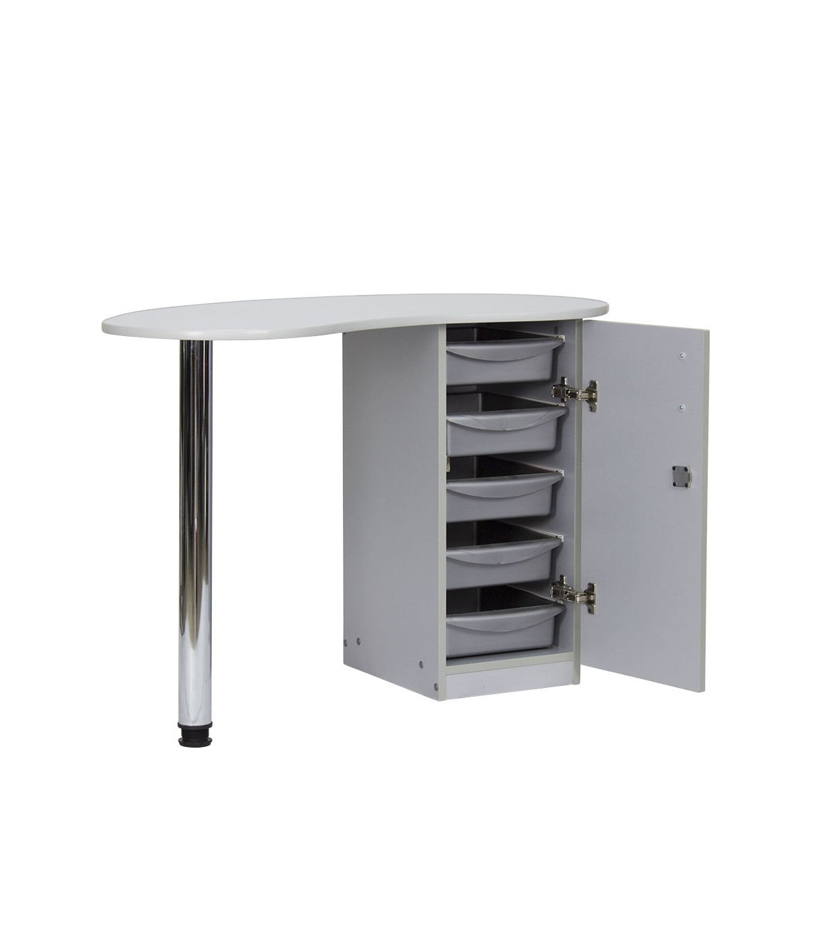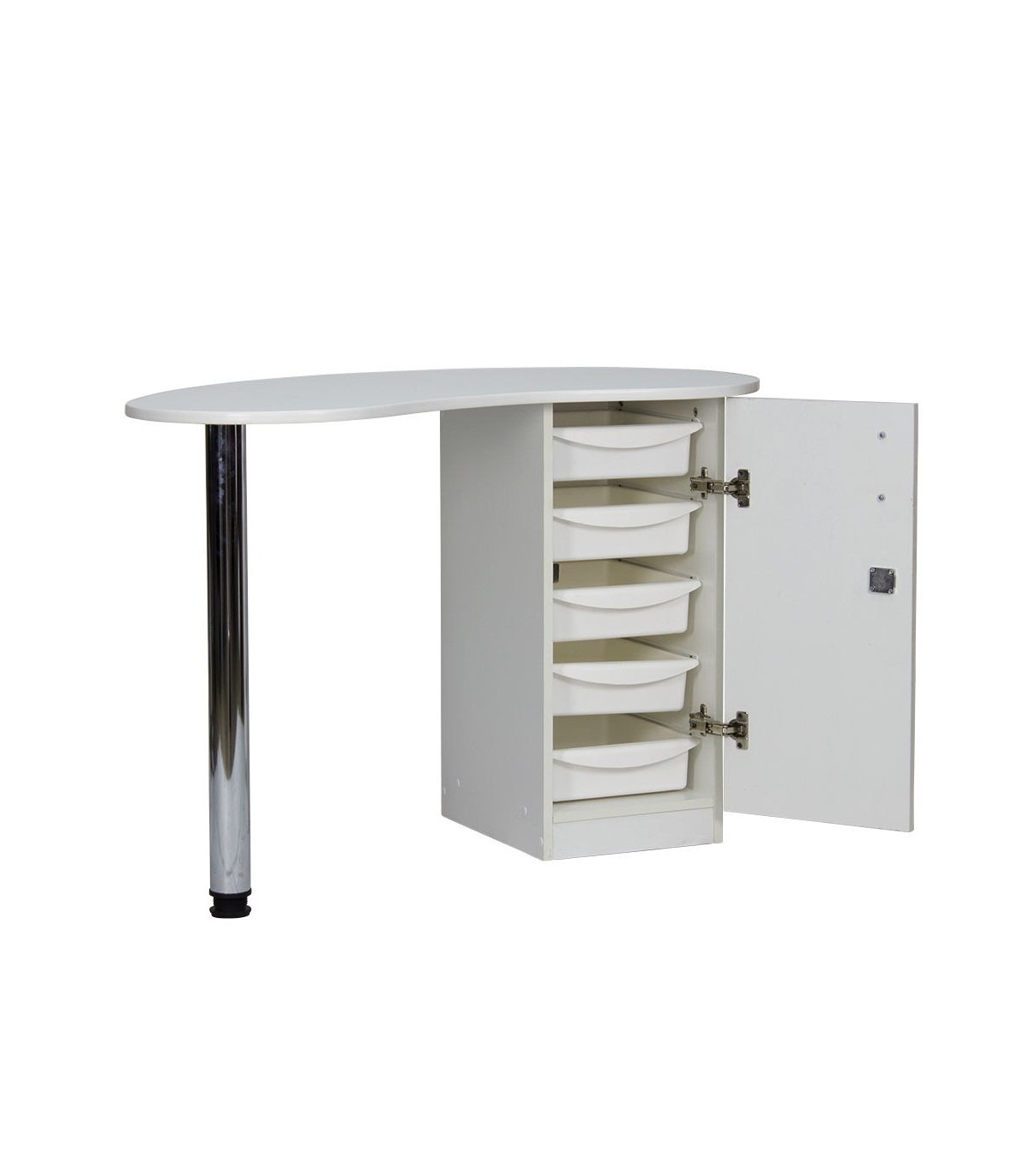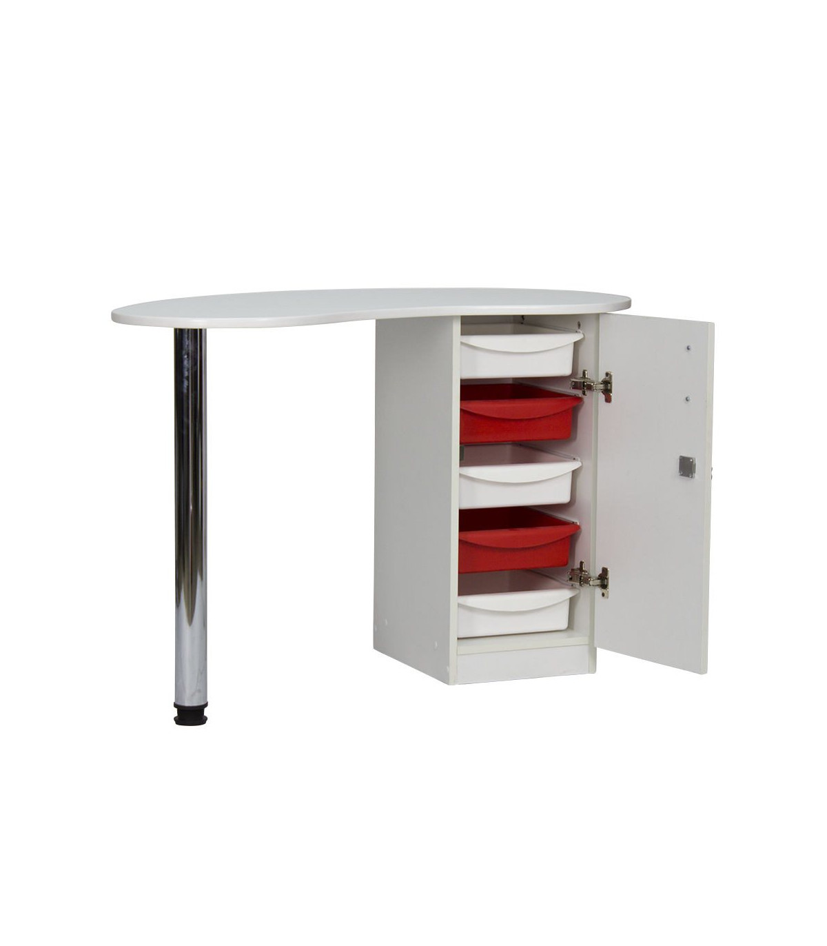 - Sim, a mesa possui um armário lateral com porta de abrir e fechar com trava para organizar seus utensílios e produtos de manicura.