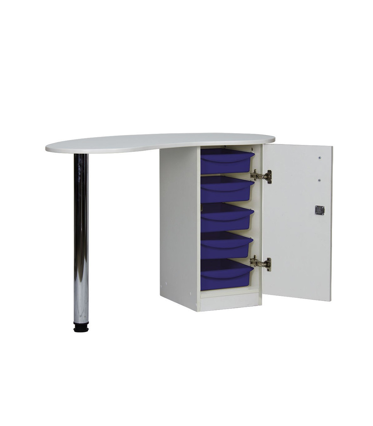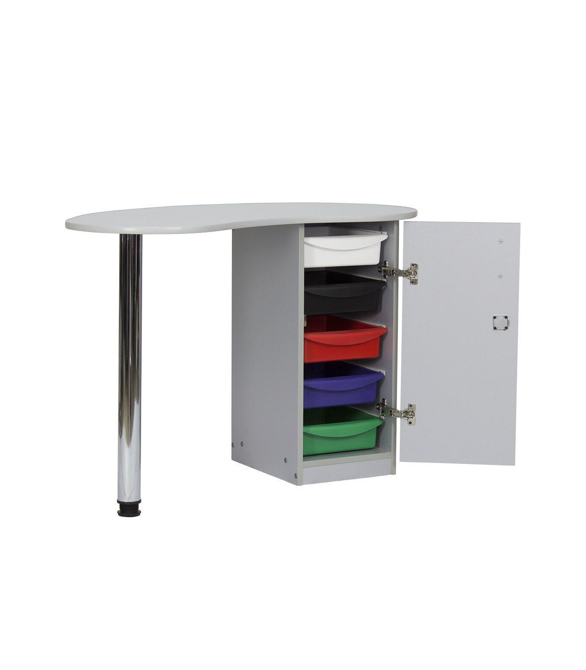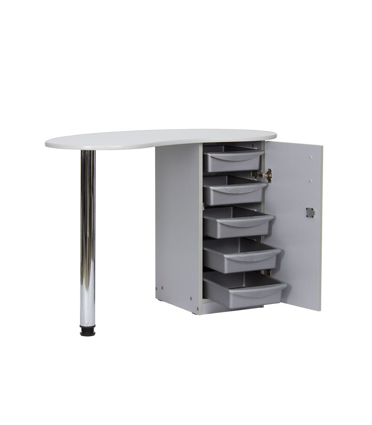 - Sim, a mesa possui um armário lateral com porta de abrir e fechar com trava para organizar seus utensílios e produtos de manicura.
