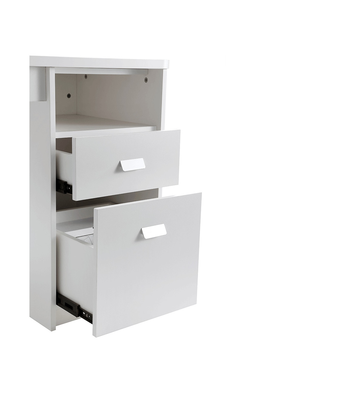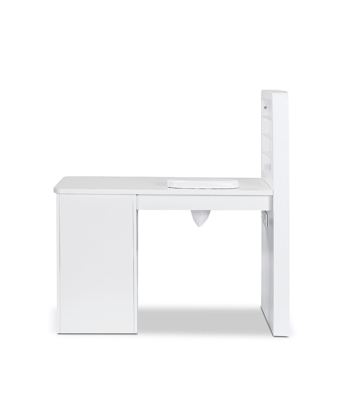 - A Mesa de Manicura Marion está disponível na elegante cor branca, que se adapta a qualquer decoração de salão.